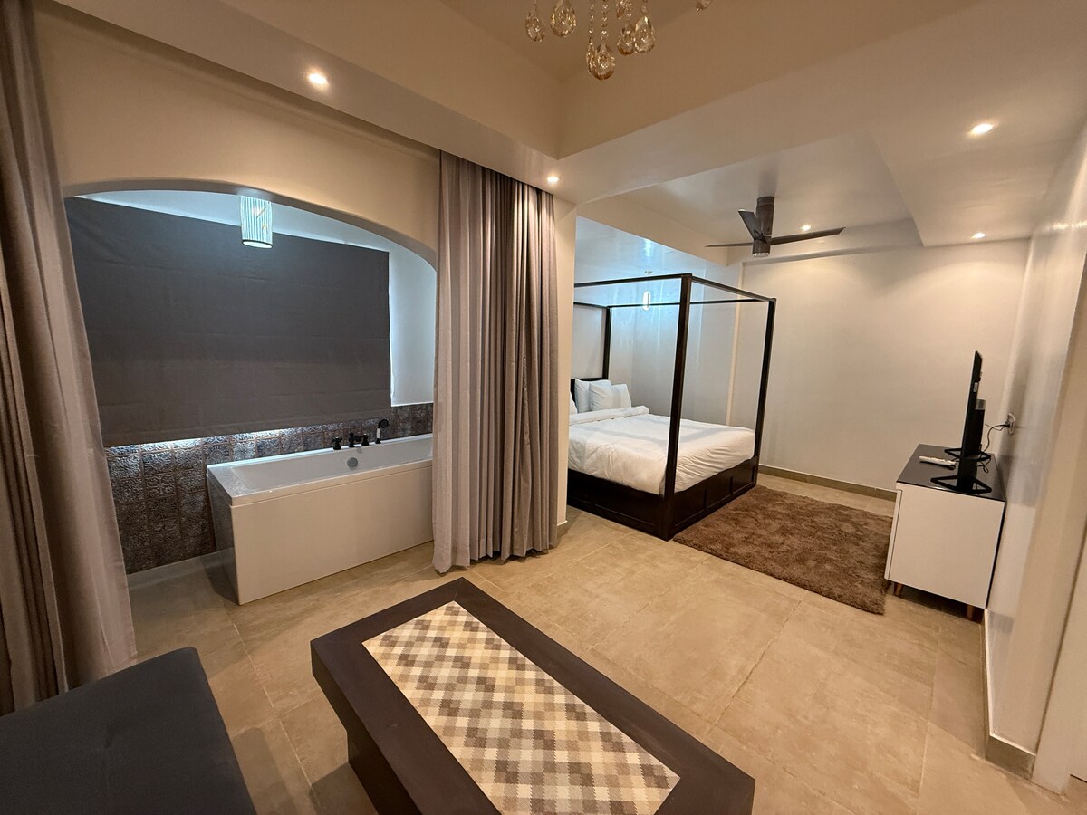 These are 2 units of our luxury semi studios with pool in our boutique hotel that combines style with simplicity to give you that ‘at home’ feeling you crave. Each featuring a large comfy bed you’d love to sink into, delicious food and visual delights everywhere, These rooms promise to capture not only your eyes but your heart. Located in the heart of North Goa 5 mins from Mall De Goa all other hot spots including beaches, party spots, historic places etc are at a distance of approx 5-15 kms.