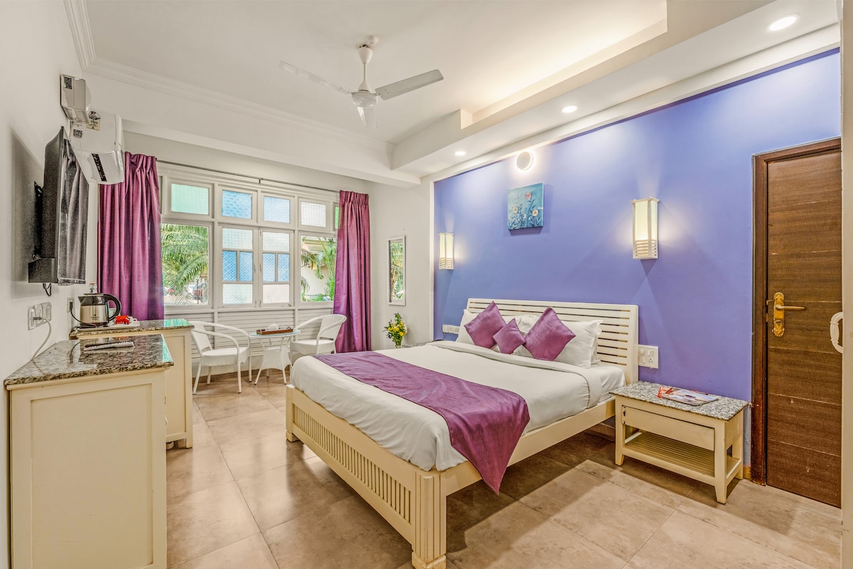 Warm, spacious & classy fully-furnished luxury ultra-spacious room with swimming pool in the very heart of Calangute! Bed room is large & have private attached bathrooms & you have ample space in the room for chilling-out. The famous Calangute Beach gets you fantastic view of beach which is walkable from hotel. Calangute, Baga and Anjuna Beach are just 1.4, 3.3 and 7.7 KM from Property respectively