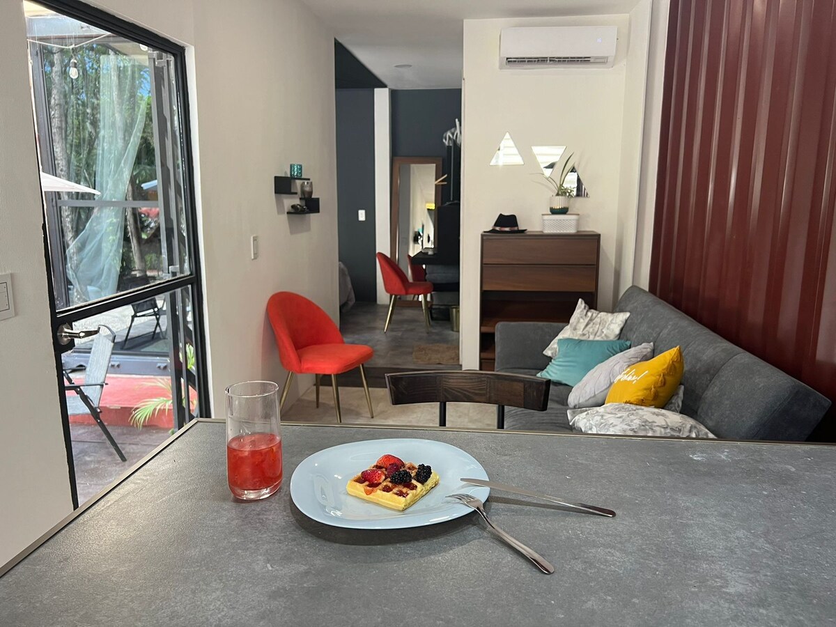 Siyakwamukela ku-Nook! Lungela ukuthola ukunethezeka okuphezulu efulethini lethu elisha eliklanywe ngesitayela sesimanje nesincane. Uma ufuna indawo ethokomele nejabulisayo ehlanganisa idizayini entsha nayo yonke intokomalo yasekhaya, le yindawo ekahle kakhulu! Njengoba isesakhiweni esidumile sefulethi i-Nook, uzokwazi ukusebenzisa izinsiza zekilasi lokuqala nendawo ekahle kakhulu yokuhlola idolobha elimangalisayo lasePalenque