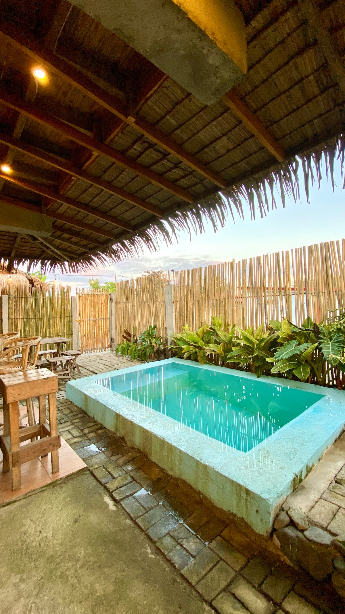 Please indicate total number of people because rates vary. AC rooms have their own bathrooms with hot/cold shower. There is a functional kitchen with basic condiments, and a spacious living area. Wifi is via Starlink. A standby generator is available for power outages (but not for ACs). Booked guests can use the resort's pool and amenities. Pets allowed (with requirements). Note: For bookings of 2 people or less, only 1 room be be opened.