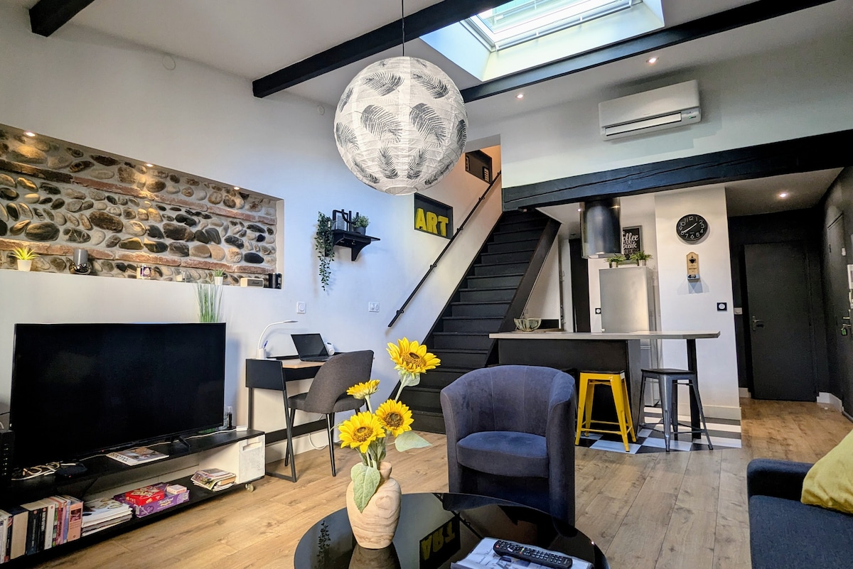 Ukuvakasha kwakho e-Toulouse kuqala lapha: ifulethi e-Victor Hugo, uhambo olufushane ukusuka esiteshini sesitimela futhi ukulungele ukukwamukela! ✅ Okwenza uyithande: ⭐ I-duplex ekhanyayo nethulile, engavamile enkabeni yedolobha ⭐ Ukubuka igceke elinamapulangwe ⭐ Ukuzingenela nokushintshashintsha nezimo ⭐ Indawo ekahle: konke kuseduze (iCapitol, i-metro, izindawo zokudlela...) ⭐ Umbhede omkhulu, amalineni nekhwalithi yezinto zokugeza kunikeziwe ⭐ Ikhofi, itiye, izinongo, umshini wokuwasha, i-WiFi, i-Netflix / i-Prime Video