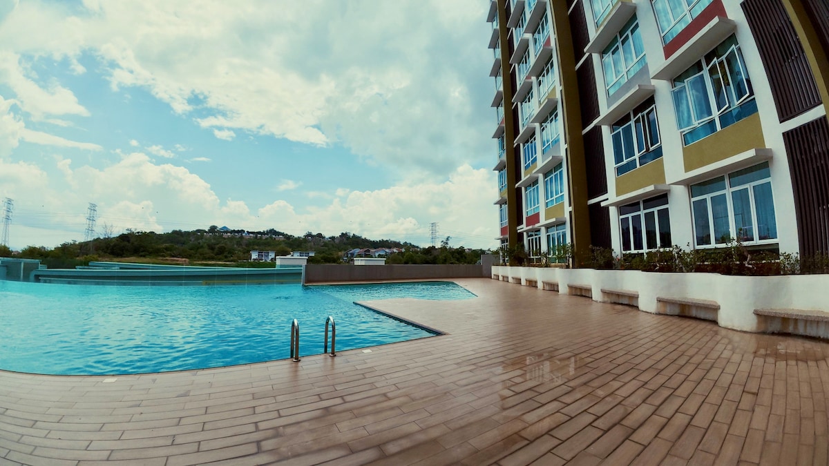 Waez Lodge@TimurBay Residence nestles on the panoramic view of Balok Beach, Kuantan. Ngokubuka ulwandle nendawo yokubhukuda, kuyindawo ekahle kakhulu yokuvakasha ebhishi yeqembu elincane lomndeni nabangane. Itholakala endaweni yase-Sg Karang lapho izivakashi zingajabulela khona ukudla okumnandi kwasendaweni okufana ne- nasi dagang, i-aplipok lekor ne-mee calong. Cabanga ngokuvuka ekuphumeni kwelanga okubukekayo futhi wabingelelwa umsindo wamagagasi olwandle ukusuka embhedeni wakho! Jabulela ikhaya elithokomele ngokuthinta umbungazi, okuhambisana namasevisi anezindawo zokuphumula.