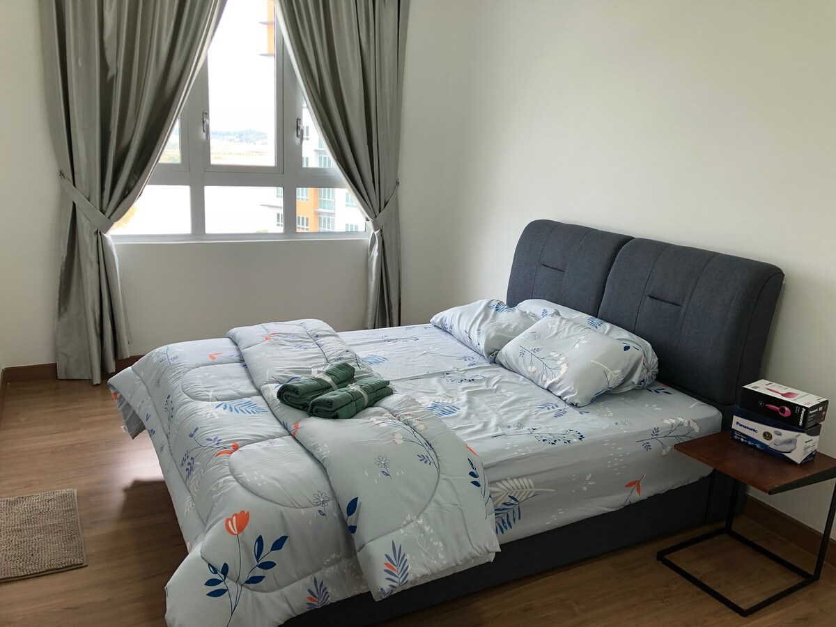 Ukuphumuza konke ukukhathala kwakho. Inokuthula & Iphrayivesi yalokhu kuhlala . 600mbps ne-Netflix ngokuhlala kwakho okujabulisayo. Ngomklamo omncane wendawo evuleke kakhudlwana. Ifulethi liqhele ngemizuzu engu-15 ukusuka ku-International Airport Terminal/KLIA 1 & 2 futhi lifinyeleleka kalula ngesitimela ngamasevisi e-hailing angu-24/7. Ufuna ukubulala isikhathi esithile ngaphambi kokuhamba , kukhona i-midsuit outlet, imizuzu engu-5 ukusuka esikhumulweni sezindiza nemizuzu engu-10 ushayela usuka endaweni yokuhlala. Amabhodlela amanzi okuphuza angu-1.5L + ikhofi elingu-3 kwelilodwa