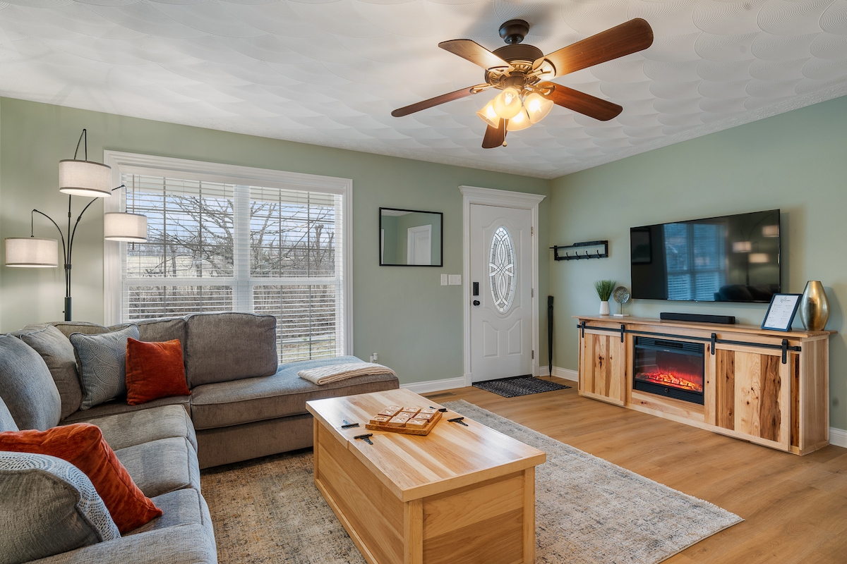 Siyakwamukela ku-Airbnb yethu enhle e-Bardstown, e-Kentucky, inhloko-dolobha ye-bourbon emhlabeni! Itholakala enkabeni yedolobha, ikhaya lethu elivulekile nelihlotshiswe kahle liyindawo ekahle yokuphumula yabathandi be-bourbon, abantu abathanda umlando, nabathandi bemvelo ngokufanayo. Ukuziqhayisa ngamakamelo okulala amathathu athokomele, ngalinye linefenisha yezinto zombhede. Indawo yokuhlala igqamile futhi inomoya, inamafasitela amakhulu nezindawo zokuhlala ezithokomele ukuze uphumule. Ikhishi elinakho konke okulungele ukupheka ukudla okumnandi.