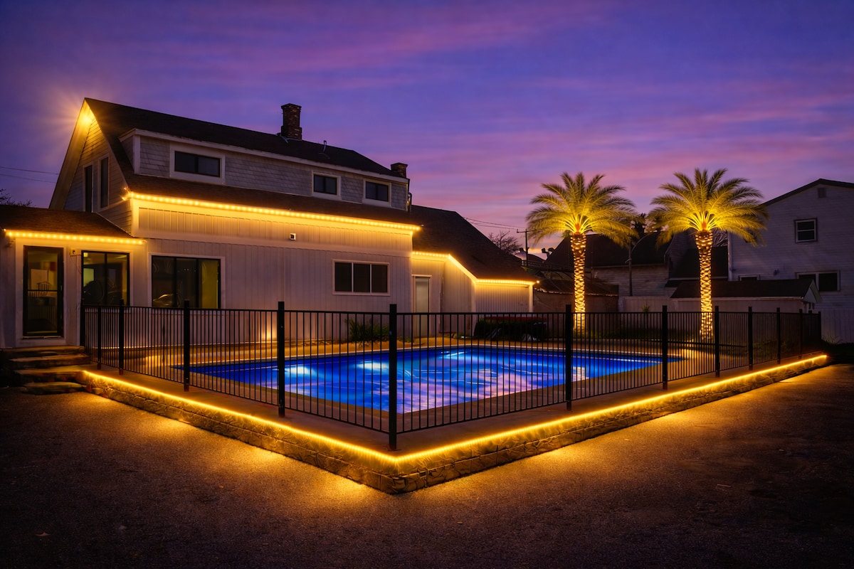 Indawo yokubhukuda ebiyelwe ngengilazi ebheke amanzi