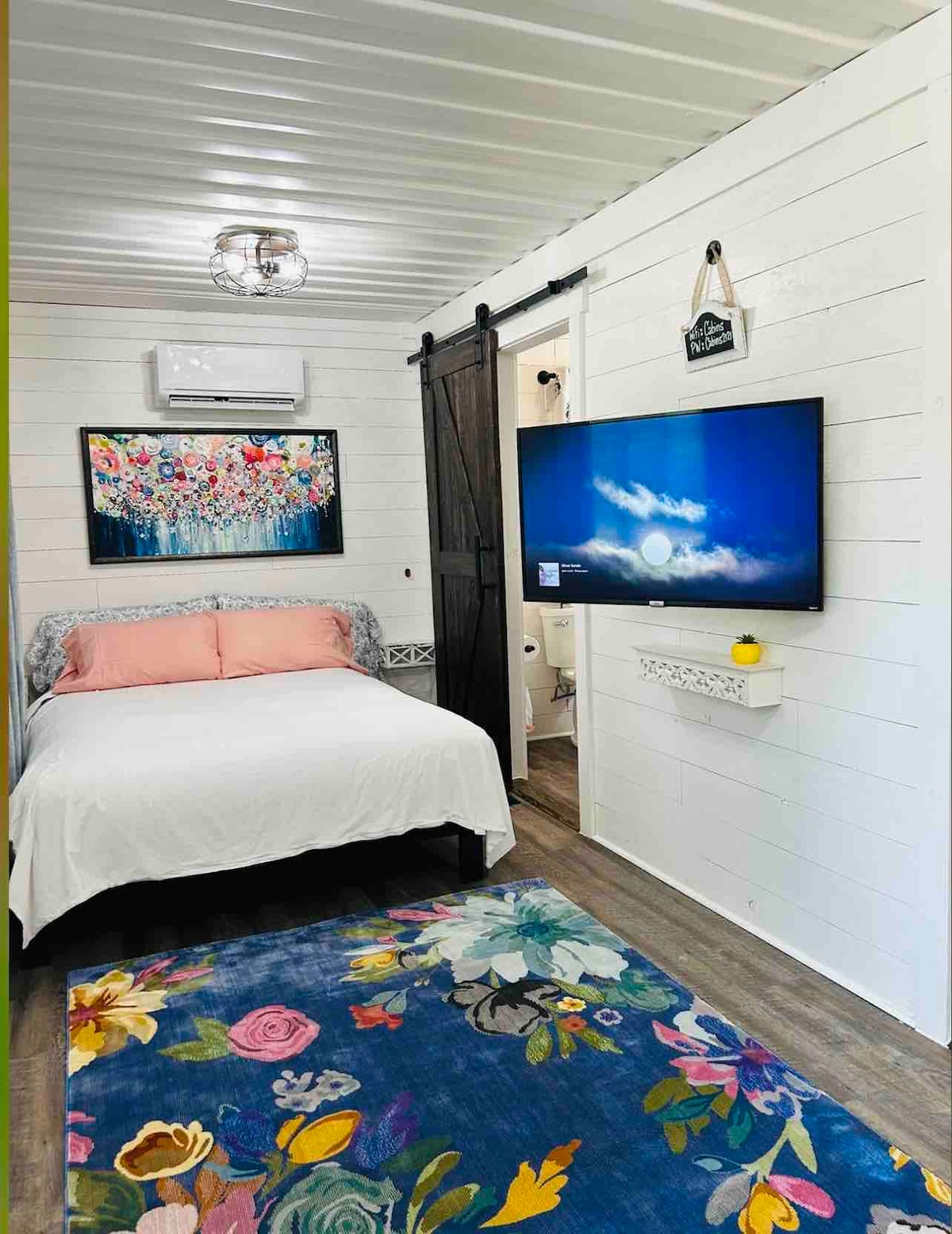Ifulethi elikhanyayo, elikhangayo elingu-408 sq ft elinombhede omkhulu, ideski lomsebenzi, isihlalo sokuphumula/i-ottoman, igumbi lokugezela eliphrayivethi elingu-3 nekhishi (usinki, i-mini frig. & i-microwave). Iphinde ibe nekhabethe elizinikele, isiteshi sekhofi esinakho konke, i-smart TV, i-rack yemithwalo, ibhodi loku-ayina elinosayizi ophelele kanye ne-blow dryer. Amafasitela neminyango yesiFulentshi kunikeza izithunzi zamaRoma ezinamaphaneli acinyiwe ukuze kube nephrayivesi. Ukungena endaweni yokuhlala yomgodi womlilo wangaphandle nakho kufakiwe. Kulula ezindaweni ezithandwayo zasendaweni e-Aiken, SC nase-Augusta, GA.