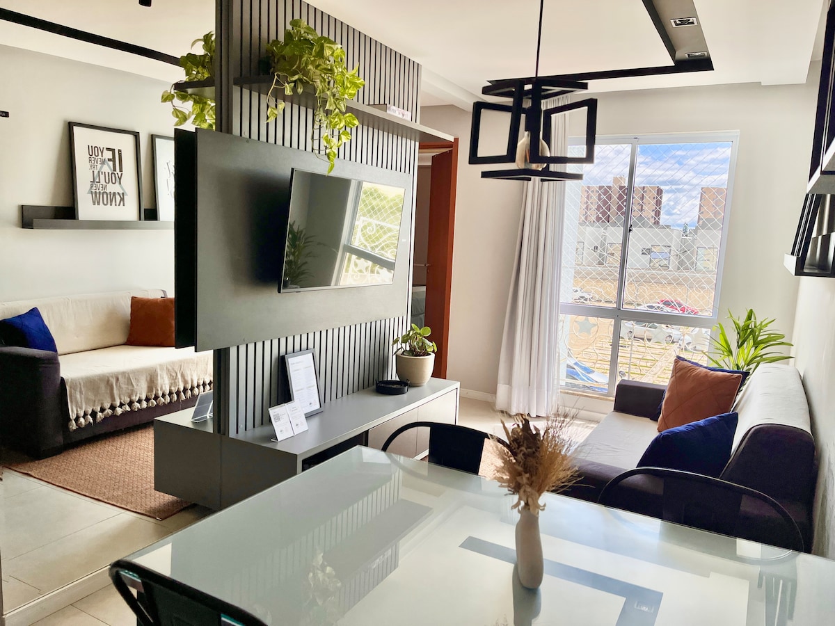 Okokuzithokozisa okuyisitayela kuleli fulethi elisendaweni enhle kunazo zonke edolobheni - i-Olívia Flores. Iklanyelwe ukubungaza izivakashi ezijabulela ukunethezeka, ifakwe i-TV Smart 43", i-air conditioning, izintambo zelineni ezingu-300, igumbi lokugezela elivulekile, ikhishi elinezitsha, ifriji ne-microwave. Kuyimizuzu engu-7 ukuya e-Shopping Boulevard, imizuzu engu-9 ukuya e-Downtown nemizuzu engu-10 ukuya e-Shopping Conquista Sul.