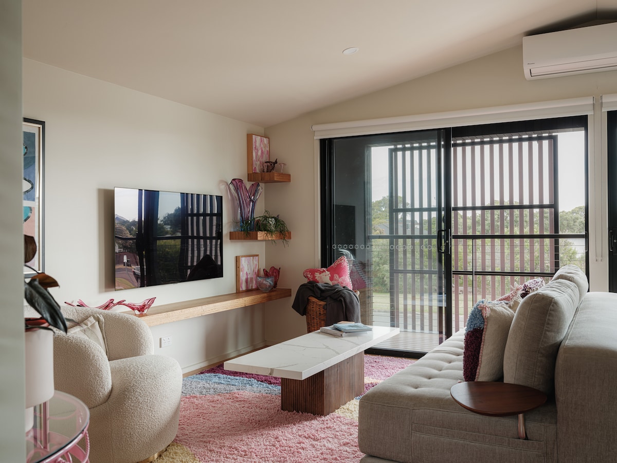 Itholakala e-Hitchcock Avenue enkabeni ye-Barwon Heads, i-Now&Then ilungele imibhangqwana noma imindeni emincane. Ukuhamba ngezinyawo okufushane phansi kwe-Hitchcock Avenue kuzokuyisa enkabeni yedolobhana enezindawo zokudlela, amathilomu nama-boutique. Umfula nebhishi nakho kusemnyango wakho, kuqhele ngebanga elifushane. Nakuba isendaweni eyinhloko ikude ngokwanele ne-precinct yezitolo ukunikeza ukuphumula okudingayo iholide lakho.