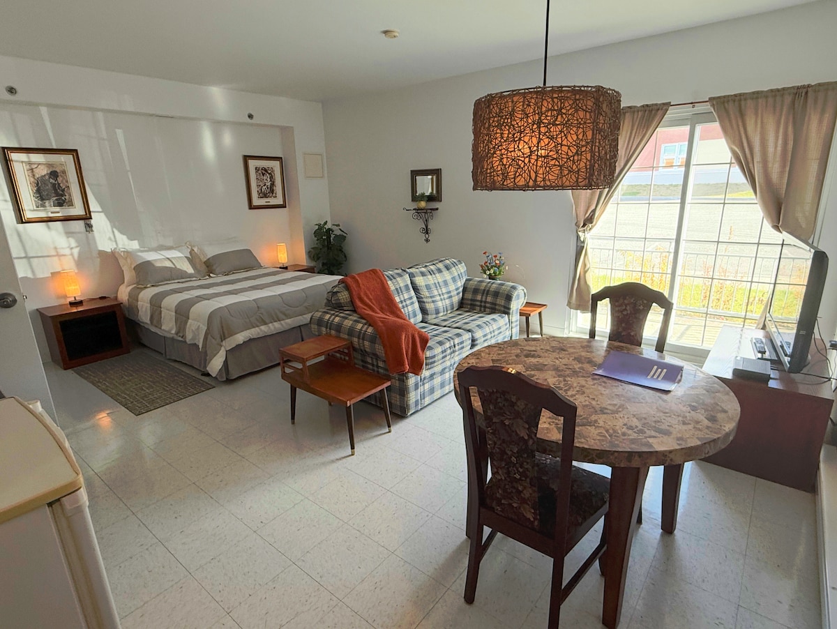 Siyakwamukela estudiyo sakho esihle esinendawo yokungena ephrayivethi nendawo yokupaka yamahhala, etholakala eduze ne-UQAR nedolobha! Itholakala egumbini elingaphansi kwendawo yethu yokuhlala eyinhloko, lesi situdiyo sinikeza indawo ethokomele nenobungane yokungcebeleka ngemva kosuku lokuhlola noma ngaphambi kokuqhubeka nohambo lwakho oluya e-Gaspésie. Lesi situdiyo futhi siyindlela ekahle kakhulu yezisebenzi ezisendleleni, zifuna indawo ethulile nelula yokuhlala kwazo.