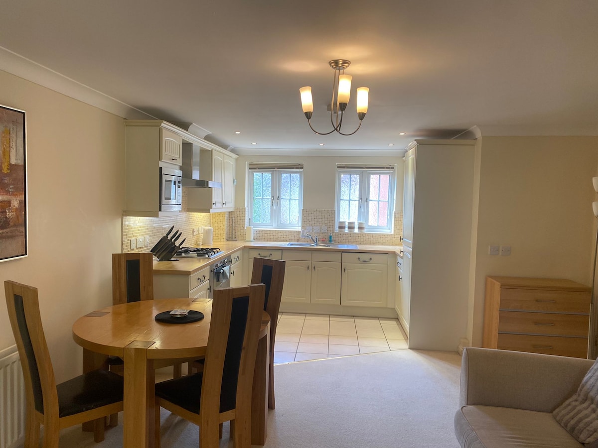 Le fulethi ekhangayo enekamelo lokulala elingu-2 elisezingeni lokuqala elinamagceke amabili okuphaka ongawasebenzisa igumbi lokuphumula/elokudlela elinosofa elithokomele, isihlalo esinezihlalo ezimbili netafula elinezihlalo Igumbi lokugezela elingaphakathi elinokushawa engena kuyo. Igumbi elikhulu linebhedi enkulu, kanti igumbi elincane linebhedi elincane elingu-3ft, Ifulethi lethu liyasebenza kahle ukufinyelela ku-M3 Jct 7 futhi lingaphansi kwamamayela angu-5 ukusuka e-Central Basingstoke nature parks ngaphansi kwebanga lokuhamba ngezinyawo. Iziphuzo zamahhala, Ubisi, amabhisikidi, nokudla okulula 👍