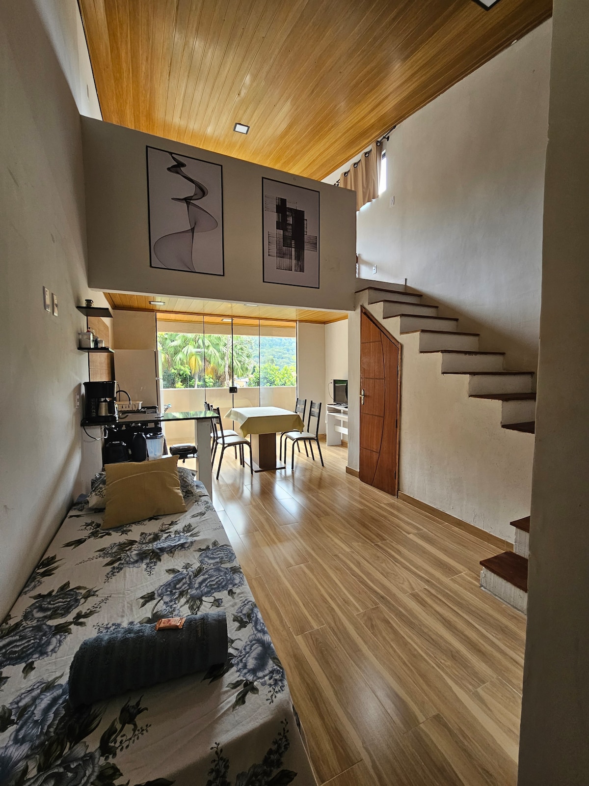 Indlu yeholide eyakhiwe ngamapulangwe enezitezi ezingu-2 nendawo yokubuka ebheke ulwandle ezungezwe yi-Atlantic Forest. Kunamakamelo okulala angu-2, ihhovisi, idekhi ephezulu enokungena ku-gazebo, ikhishi elinakho konke, igumbi le-TV eline-Netflix, igumbi lokugezela, igceke elingemuva elibiyelwe ngokuphelele, ishawa, indawo yokosa kanye nengadi enezihlahla zezithelo. Sine-Wi-Fi kuyo yonke indlu. Simizuzu engu-10 nje ukusuka ebholeni nasemizuzwini engu-7 ukusuka ezitolo zase-Vila do Abraão. Lapha akuyona nje indawo yokuhlala kodwa okuhlangenwe nakho kokucwiliswa kwemvelo :-)