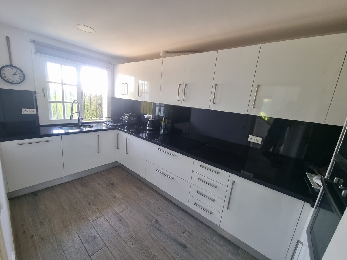 Indlu ebukekayo e-Bel Air Estepona. Ibanga lokuhamba ngezinyawo ukuya ebhishi kanye nemizuzu engu-5 ukusuka ku-puerto Banus, imiz engu-4 ukuya e-San Pedro, imizuzu engu-10 ukuya e-Estepona nase-Marbella. Amakamelo okulala angu-2 e-Suite anegumbi lakhe lokugezela. Ingadi Ebukekayo Yokuphumula e-Jacuzzi. Ingadi enhle kakhulu yomphakathi enamachibi angu-2 avikelekile. Ihlotshiswe ngokugcwele: Washmachine, i-Dryer, Umshini wokuwasha izitsha, i-2 Smart TV, i-Sonos Sound System, i-Wifi njll.... Izifundo ze-4 zegalofu ngaphansi kwemizuzu engu-5 ushayela. (Atalaya Golf, El Paraiso, Los Flamingos, Guadalmina)
