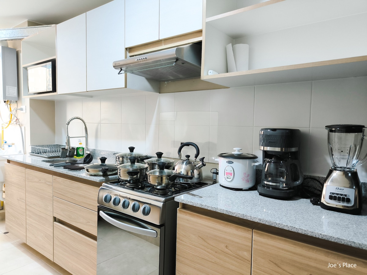 Disfruta de este apartamento acogedor con sala integrada y cocina totalmente equipada, ademĂĄs de una encantadora terraza privada donde podrĂĄs relajarte mientras contemplas una hermosa vista a la puesta de sol. Ideal tanto para viajes, negocios o una escapada relajante. A pocos minutos del aeropuerto, tendrĂĄs acceso cercano a centros comerciales, avenidas principales que conectan rĂĄpidamente con toda la ciudad, y reconocidas universidades. RelĂĄjate en este espacio tranquilo y elegante.