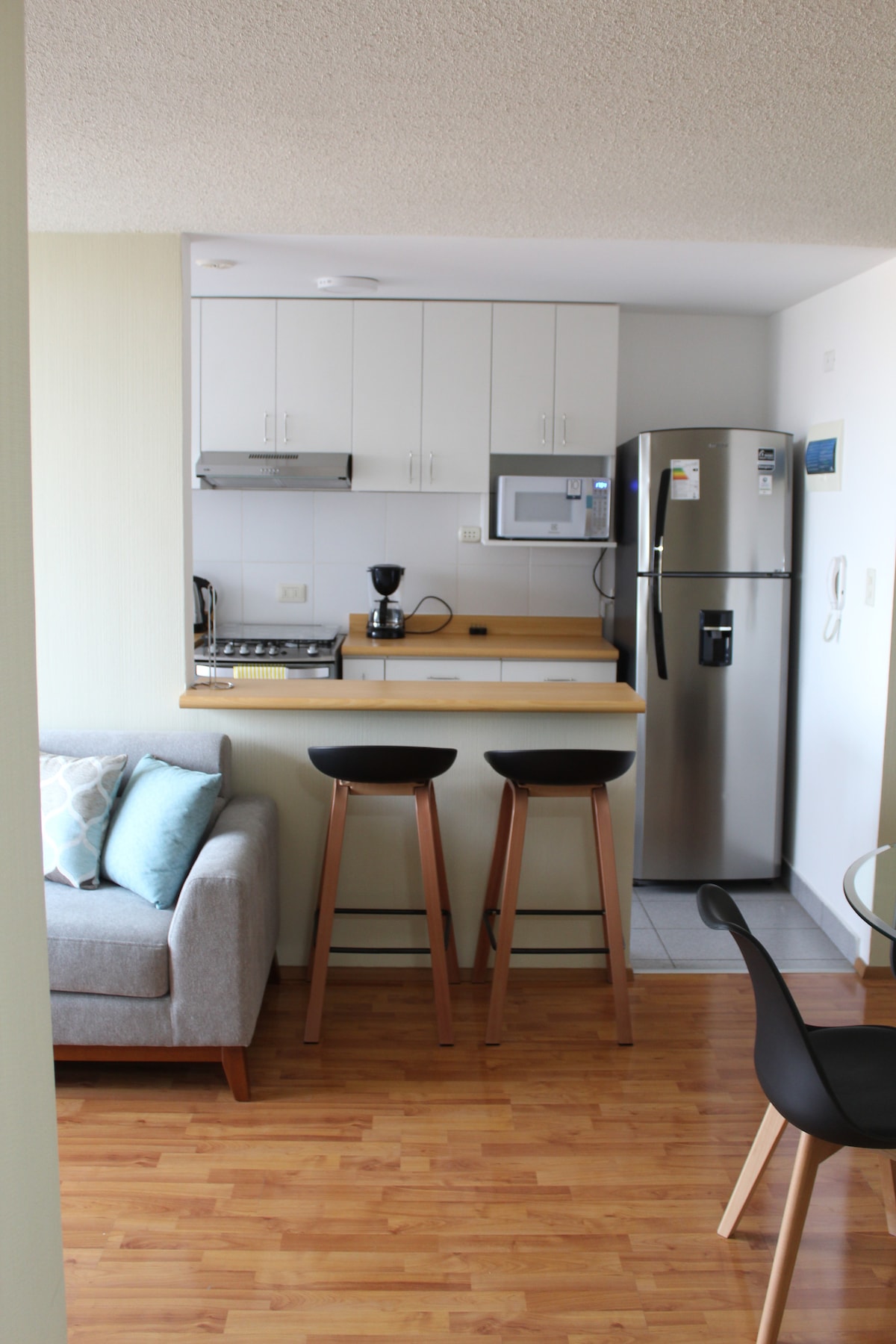 Indawo ecabanga ukuphumula ngokunethezeka ngakho konke ukunethezeka okwenza uzizwe usekhaya. Uma udlula e-Lima futhi ulinde indiza yakho elandelayo? Lena yindawo ekahle kakhulu! Eduze kakhulu ne-Jorge Chavez International Airport. Umnyango une: 1 Umbhede weNdlovukazi onombhede owodwa 1/2 wokuhlala Ifriji yamanzi ashisayo enesiqandisi, umshini wokuwasha, uhhavini, isitofu, i-microwave, ikhishi, izitsha, izinto zokusika. Umthamo WE-SUPER internet ye-Wifi MASWINNER 500 Mbps. Ikamelo lokulala elinesimo somoya.