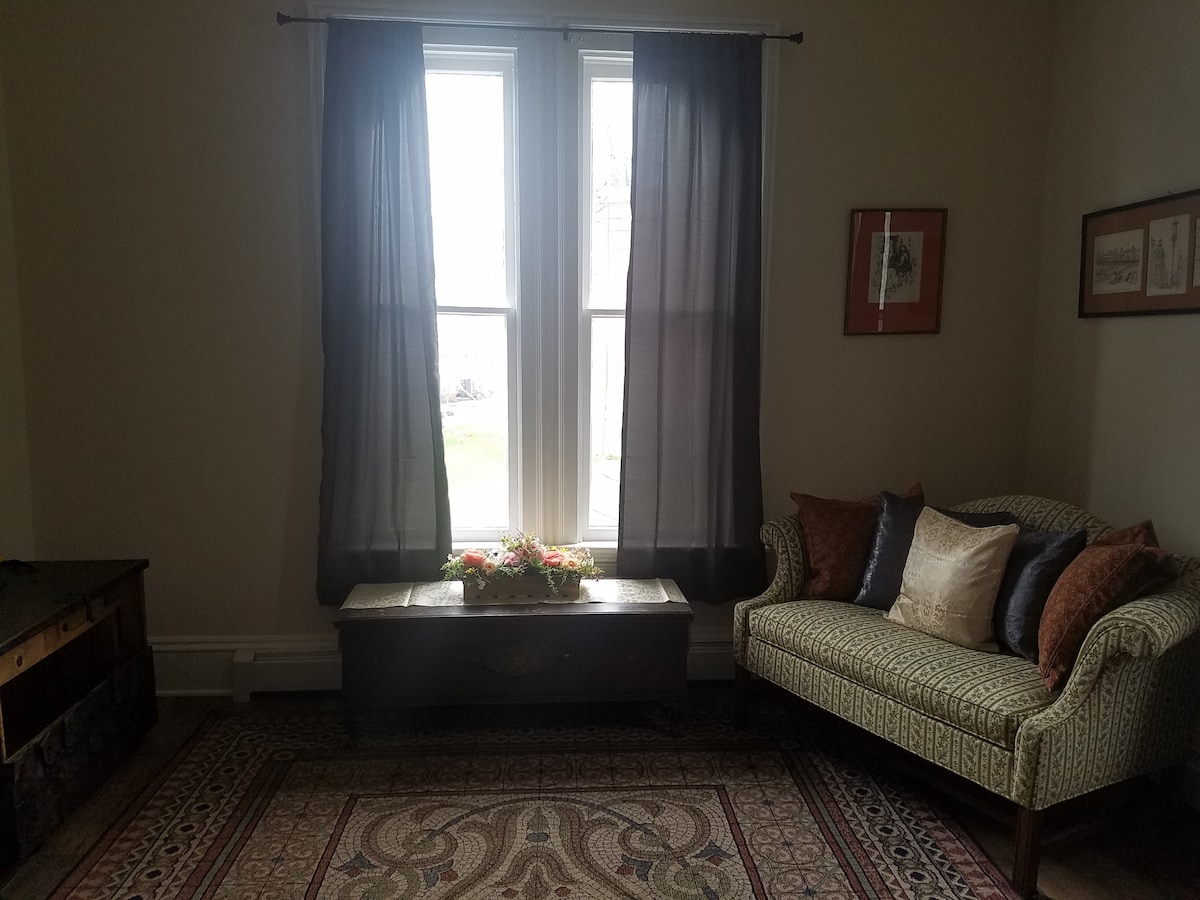 Leli yifulethi lesibili elilungisiwe ngenhla kwesitolo sakudala ku-Greenwich Street ethandekayo yomlando. Leli fulethi 'liwuhlangothi olugqamile' lwesakhiwo olunokukhanya kwefasitela elingokwemvelo. Iphinde ibe nekhishi elijwayelekile eligcwele izinto zokupheka nezitsha zazo zonke izidingo zakho zokupheka kanye nendawo yokuhlala ethe xaxa ekhishini kanye negumbi lokugezela elikhulu kakhudlwana. Kukhona i-microwave, ibhodwe elikhulu lekhofi, i-blender, i-ect. Kukhona ideski ne-TV egumbini lokuphumula & ekamelweni lokulala. Azikho izingane ezingaphansi kuka-16.