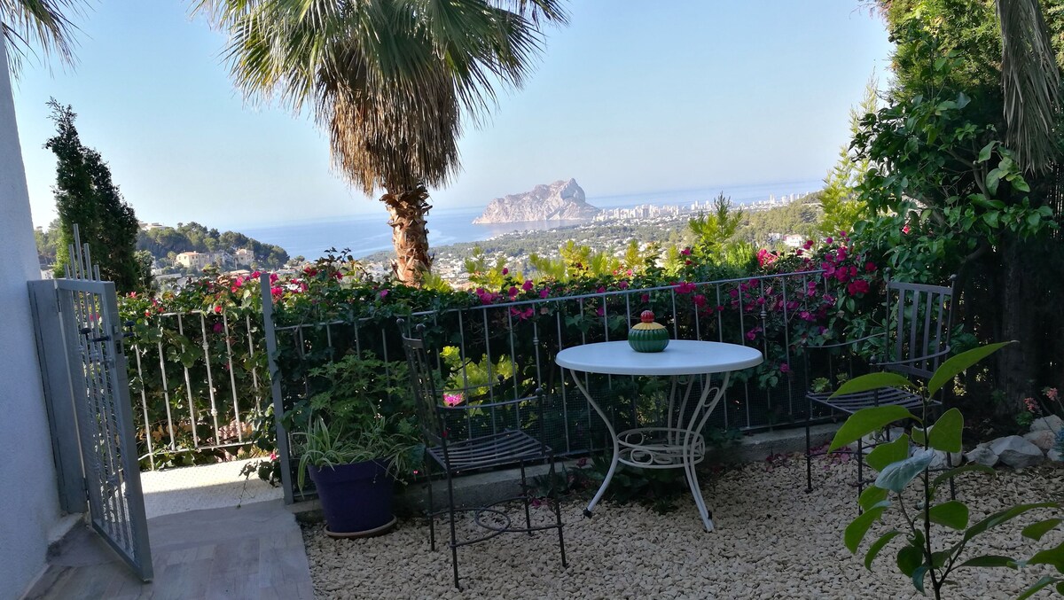 Ifulethi elithokomele elinengadi phakathi kwamadolobha asogwini lwase-Moraira nase-Calpe. I-studio silungiswe ngokuphelele ngo-2022 futhi manje izivakashi zethu nazo zinekhishi elihle lokudla elinendawo yokudlela nesofa. Ithala le-Mediterranean elihlanganiswe nengadi ne-BBQ neGesi liqedela yonke into. Kuqhele ngemizuzu engu-15 ukuya ebhishi eliseduze. Inkundla yethenisi enezindawo zezemidlalo ezifana ne-paddle tennis, i-yoga ne-Pilates isendaweni eseduze.
