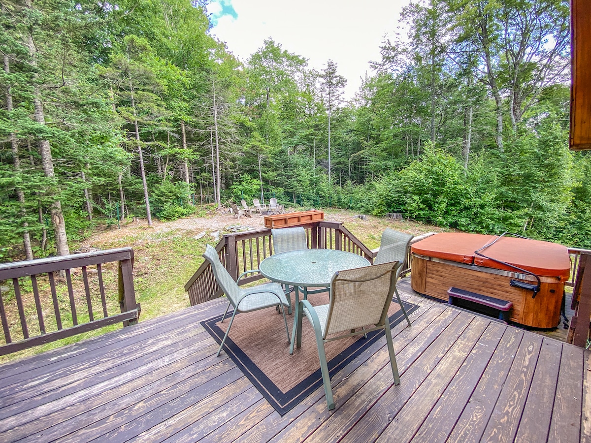 Woza ubalekele e-Wilmington, e-Vermont. Ukubukwa okubabazekayo kwe-Mt. Iqhwa, umfudlana omncane, nobhavu omkhulu wamanzi ashisayo kuma-acre angu-12 afihlekile. Imizuzu engu-10 kuphela ukuya e-Mount Snow nemizuzu engu-30 ukuya e-Stratton ikhaya lethu liyindawo ekahle kakhulu yokuvakasha kwakho kwe-VT nayo yonke umndeni wakho nabangane. Woza eqhweni, i-snowboard, i-snowmobile, ukuhamba ngezinyawo, i-kayak, ibhayisikili lasezintabeni, ukubhukuda, noma izinhlanzi kusele imizuzu nje! Ngemva kosuku lwakho olude uhlola uze uphumule kubhavu wamanzi ashisayo, ngomlilo, egumbini lomdlalo, noma uphume emphemeni wethu uthatha ukushona kwelanga!