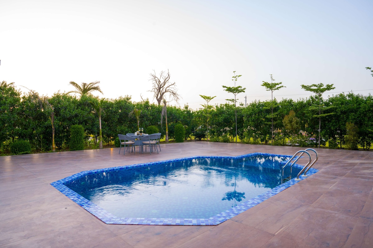 Patio Farms in Farukh Nagar offers 4-star comfort with family rooms, private bathrooms, and garden views. Each room features air-conditioning, a private entrance, and modern amenities. Guests can enjoy a swimming pool with a view, sun terrace, and lush garden. Free WiFi is available throughout the property, ensuring connectivity. Additional facilities include a fitness room, outdoor fireplace, and yoga classes.