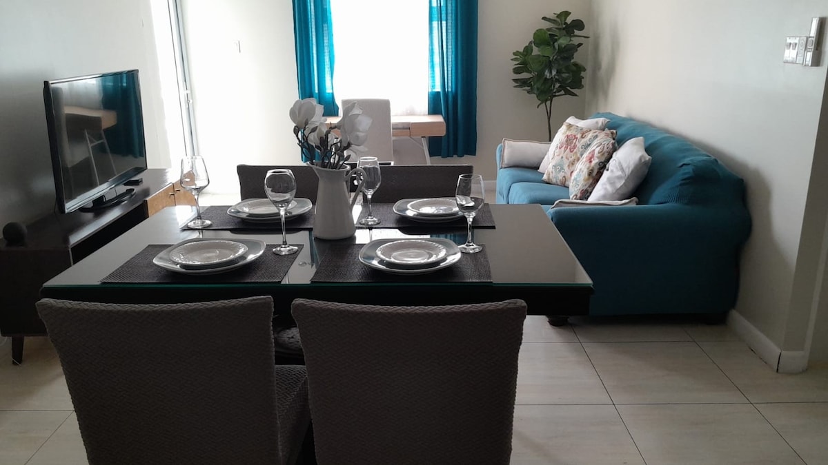 Enjoy the best of the city at a stylish condo located at Liguanea in Kingston. This City getaway is conveniently close to: U.S.-Embassy, Sovereign North plaza, Progressive Shopping Plaza, Sovereign Centre, Bob Marley Museum, Banks, Barbican area, shopping & restaurant locations. With a modern designed interior, the apartment is perfect for families, friends, solo travelers, visiting for business or leisure. Relax at a secure complex, featuring a pool, a roof terrace +more