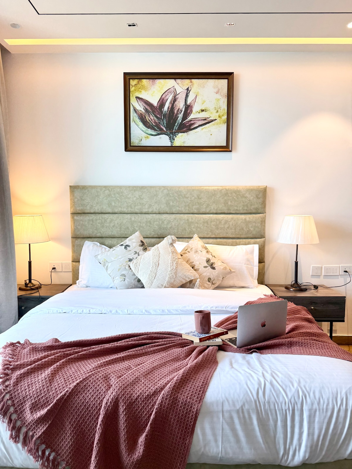Welcome to a stylish loft at M3M Cornerwalk, Sector 74, Gurgaon, blending luxury, comfort, and personality. Featuring double-height ceilings, modern interiors, stunning skyline views, a fully equipped kitchen, and super-fast WiFi, it’s perfect for work or leisure. Enjoy complete privacy, secure access, high-speed elevators, and parking on request—hotel-like class with the warmth of home and an Insta-worthy vibe.