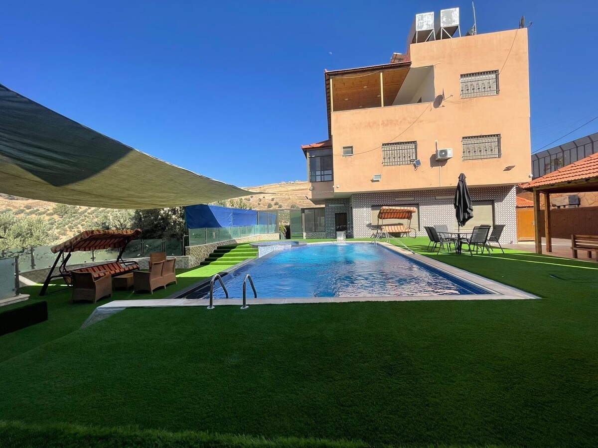 Phumula ebuhleni bendawo yethu ebheke nasezindaweni ezikude zasemaphandleni ukusuka endaweni ephithizelayo yedolobha futhi ujabulele indawo yethu yokubhukuda evulekile nezindawo eziluhlaza ezinamapulangwe ezikunikezayo ukuze uphumule futhi ujabulele umoya obabazekayo. Ngithole amandla ebhizinisi amasha ngesevisi yethu ephelele, esetshenziswa ngokugcwele, indawo yasemaphandleni enakho konke okudingayo ukuze ube neholide elingenakulibaleka nabangane nabazali. Ukufinyeleleka, ukuzola, nokukhanya kwezinkanyezi esibhakabhakeni kuyisingeniso nje sokwamukela izivakashi okulandelwa isevisi ye-inthanethi, umbhede, ukudlala, ukubhukuda, ukuhamba ngezinyawo noma ukulala endaweni emaphakathi engekho ngaphezu kwamakhilomitha angu-20 ukusuka enkabeni ye-Amman, i-Jerash, noma Isifundazwe sase-Blue.