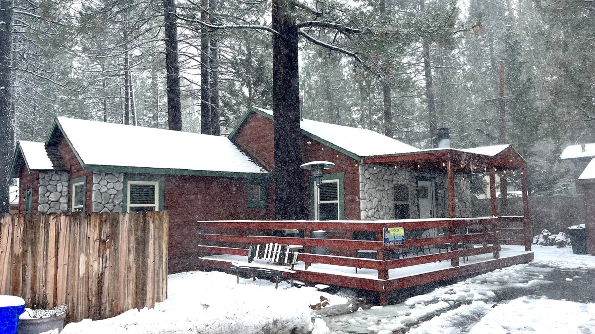 Siyakwamukela ekuthuleni kwe-Big Bear Lake. Indlu yeholide eyakhiwe ngokhuni i-Badger Lane isendaweni ethulile, enokuthula eqhele ngemizuzu engu-5 ukusuka e-Village nasechibini. Iyunithi yethu iyazamukela izilwane ezifuywayo. Woza uphumule ngasendaweni yomlilo futhi ujabulele uhlelo lwakho oluthandayo ku-Roku/YouTube TV yethu noma uzulazule ngasechibini. Izitolo zasemzaneni ziseduze, yidla ukudla okumnandi, noma uphuze isiphuzo (asikho isidingo sokushayela). Woza ujabulele i-Badger Lane Chalet, uthokomale, futhi ujabulele ukuvakasha okungenasici e-Big Bear!