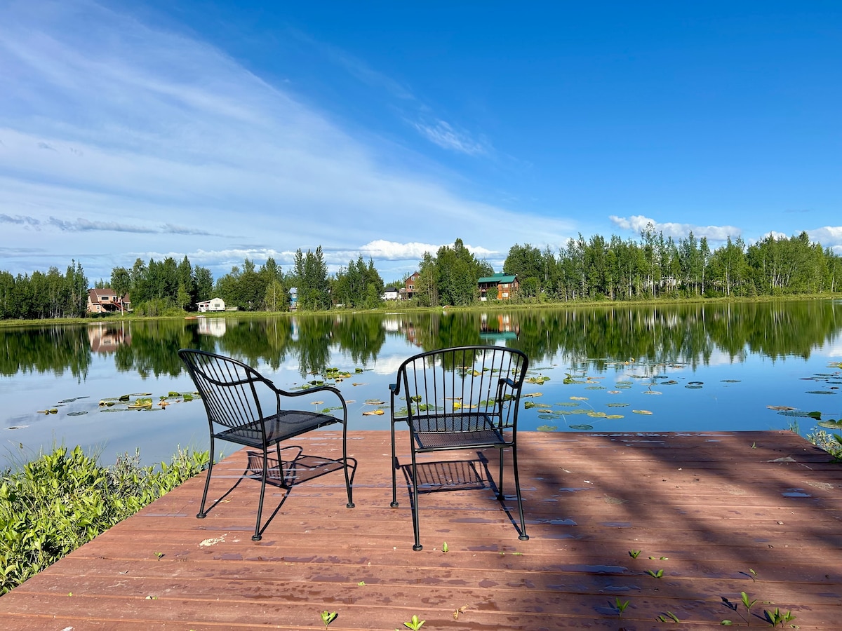 Phumula kule ndawo yokuvakasha eyingqayizivele, enokuthula. Ngena echibini usuka esikhumulweni bese uthokomele ku-sauna yethu yomgqomo. Kusukela emphemeni oseceleni kwamachibi, bheka ngasempumalanga e-Lazy Mountain, e-Matanuska Peak, nase-Pioneer Peak. Leli khaya elinakho konke linekhishi, igumbi lokugezela, nezindawo zokuwasha. Vumela isikhathi sincibilike- ngeke ngisho ukhathazeke.