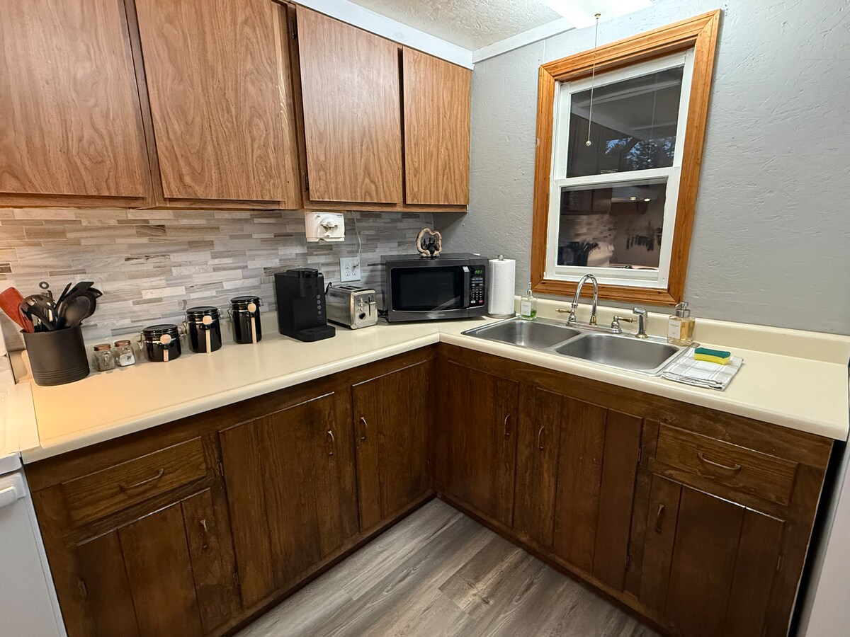 Iphrayivesi nokunethezeka kungokwakho uma uhlala kule ndlu eyakhiwe ngamapulangwe enezinkathi ezine evulekile enamakamelo angu-3, amagumbi okugezela angu-2 anamachibi awo aphrayivethi. Indlu eyakhiwe ngamapulangwe inikezwa amalineni, amathawula, ikhishi elinakho konke, i-A/C, i-WiFi, ehlungwa kuvulandi, indawo yomlilo yamadwala ethokomele, itafula lepikiniki, umgodi womlilo, indawo yokosa kanye nezindawo ezinhle. Inani lihlanganisa izivakashi ezingaba ngu-2, isivakashi ngasinye esinezelwe singu- $ 35.00 ubusuku ngabunye. Izilwane ezifuywayo zamukelwa ngemali engu- $ 20 isilwane ngasinye esifuywayo ngosuku(umkhawulo ongaba ngu-2) futhi izinkuni zomlilo wokukhempa ziyatholakala $ 5 ngenqwaba.