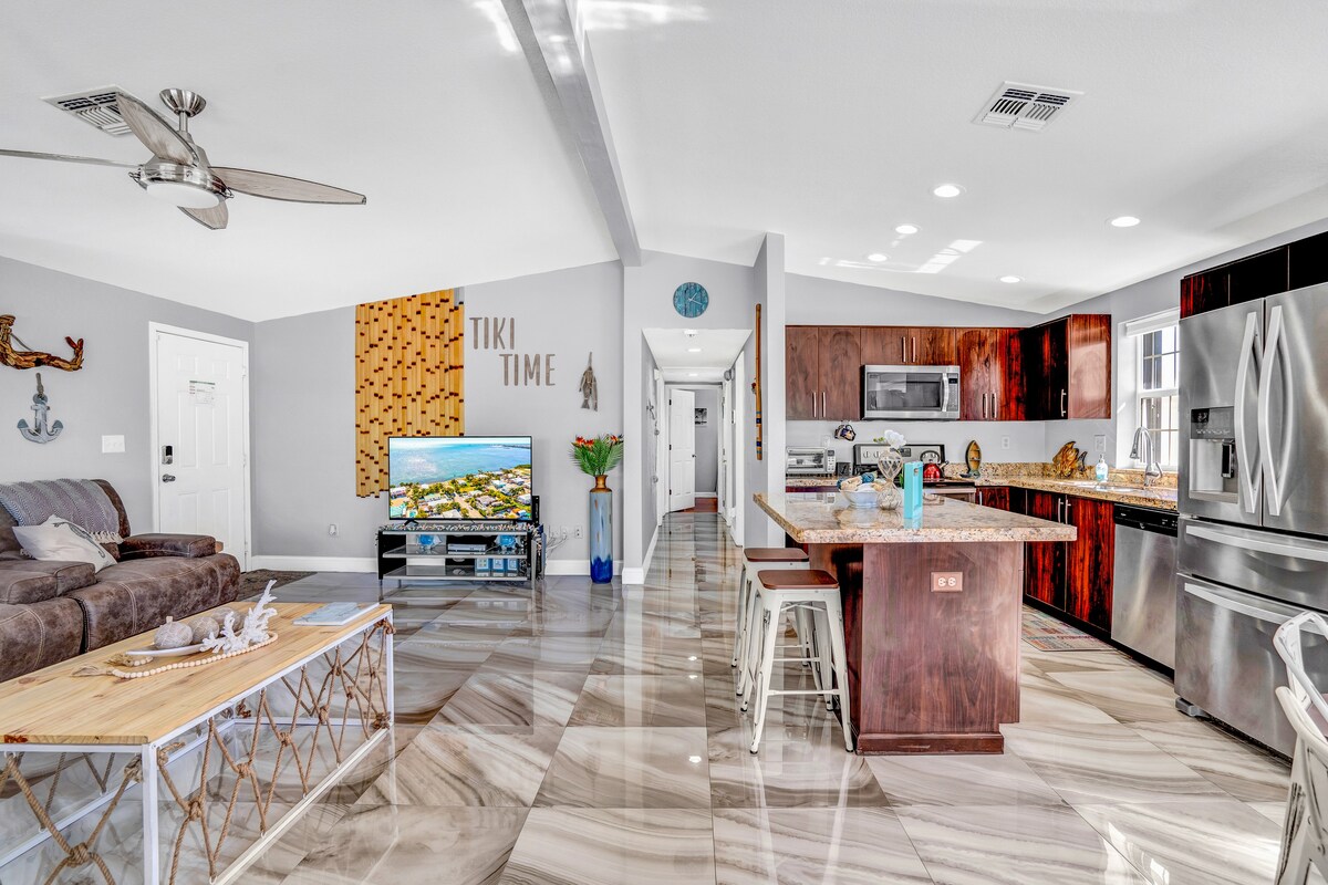 I-Tiki Time ~ ipharadesi lakho langasese ku-Marathon enhle, enkabeni ye-Florida Keys! Lena yindawo ekahle kakhulu yeholide lomndeni noma ukuvakasha okunethezekile. Ikhaya elihle le-3BR elinendawo yakho yokubhukuda yamanzi anosawoti yangasese, i-Tiki Hut, isikhala sokupaka isikebhe/i-trailer engu-30', nokubukwa kolwandle kusuka ku-balcony~Kayaks, i-grill, amathoyizi asebhishi akulindile ngosuku lwakho oluhle eFlorida Keys! Ngaphansi kwemizuzu engu-5 ukuya e-Sombrero Beach, Ezokudla & Amabha asendaweni! Jabulela Amakhiye ase-Florida njengendawo futhi ubhukhe i-Tiki Time namuhla!
