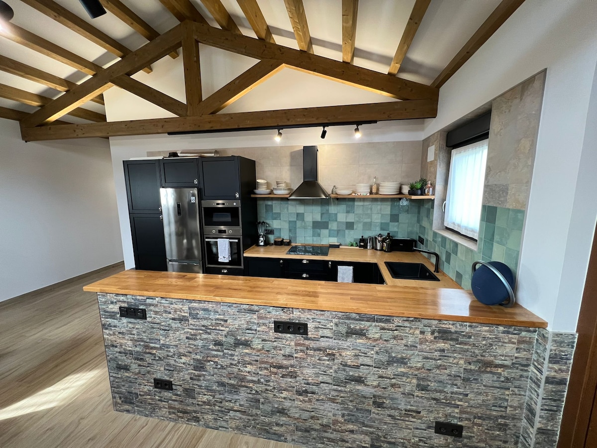 Yindlu ehlukanisiwe esakhiweni esivaliwe esingu-1000m,ezungezwe izihlahla zezithelo. Indawo ephephile ngokugcwele kanye nengqikithi yobumfihlo , ngeke kudingeke wabelane ngayo nanoma ubani , indawo ethulile maphakathi nemvelo nethuba lokwenza imisebenzi eminingi yokuqwala izintaba, ukuhamba ngebhayisikili entabeni, imihume, iminyuziyamu ,amabhishi njll. Indawo ebiyelwe enendawo yokupaka yamahhala yangasese, imizuzu engu-18 ngemoto ukusuka ebhishi BEC 30 imiz ngemoto kanye nesikhumulo sezindiza 40 imiz loizaga tower(IMIQULU ROICE umbukiso ongcono kakhulu e-Europe)