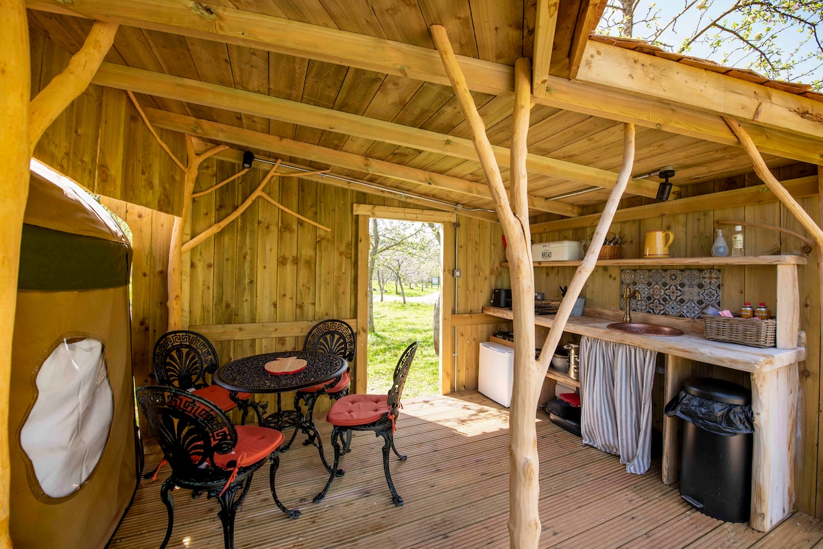 Ukuze uthole okokuzithokozisa okugcina kwe-Somerset uze uhlale emklomelweni wethu owina i-Da $t yurt yethu, efakwe ngaphakathi kwezihlahla ze-6 ½ acre orchard, onqenqemeni lwe-Exmoor National Park enhle. U-Da $t unombhede owenziwe ngesandla, umbhede we-bespoke futhi uyashisa ngendlela yokushisa izinkuni ethandekayo enombane oyinhloko kuyo yonke indawo. Ngaphandle kunekhishi elimbozwe ngesandla/indawo yokudlela kanye nendawo ye-BBQ nomgodi womlilo, okwenza kube yindawo ekahle kakhulu yokuvakasha, kungakhathaliseki isimo sezulu!