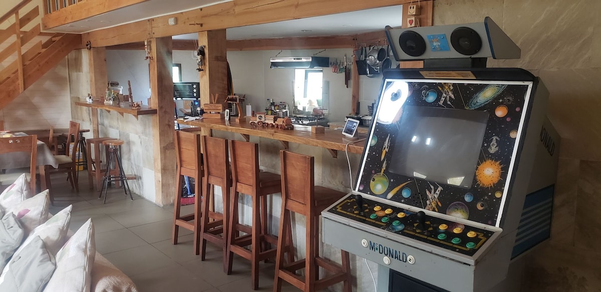 I-dome house ifakwe emvelweni, imizuzu ukusuka eqhweni edolobheni. Indawo ehlanganyelwayo ene-TV, i-WiFi, i-arcade nekhishi elincane. Yiba nemidlalo ne-TV yezinto zakho. I-Chiflonera, i-central heating, izindlu zokugezela ezingu-4, amathala amakhulu angu-2, i-grill, amakamelo angu-7,atholakala ku-5000m2 ahlanganyelwa nendlu yethu encane nefulethi lethu elisha. Emizuzwini ye-shangrila kusuka ezindaweni ezithandwayo ze-Trancas neziphethu ezishisayo zase-Chillán. Ubhavu omkhulu onenani elengeziwe