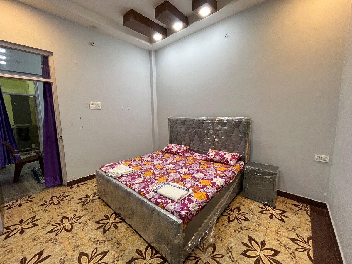 1. This fully independent house is on the second floor, offering you complete privacy and the entire space to yourself. 2. Caretaker available 24×7 for assistance, onsite or over phone, as required. 3. Enjoy superior comfort with brand-new 8-inch mattresses in every room. 4. Kitchen access for cooking is available at ₹500 per day, payable on-site. 5. Listed rate is for two guests in one room only. An extra room is available for a third or additional guest, with charges applied as per Airbnb.