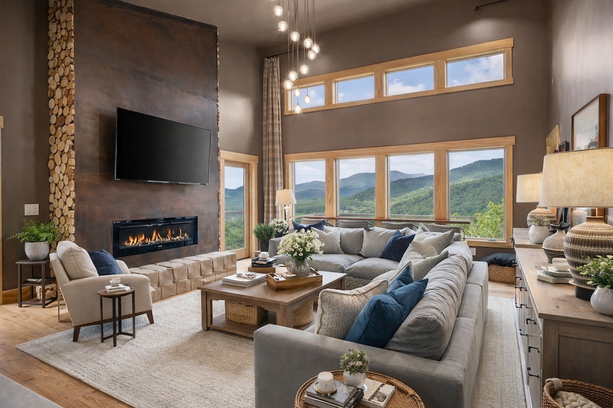 I-Modern Lodge enendawo yokubuka + igumbi lokudlala eduze ne-Asheville!