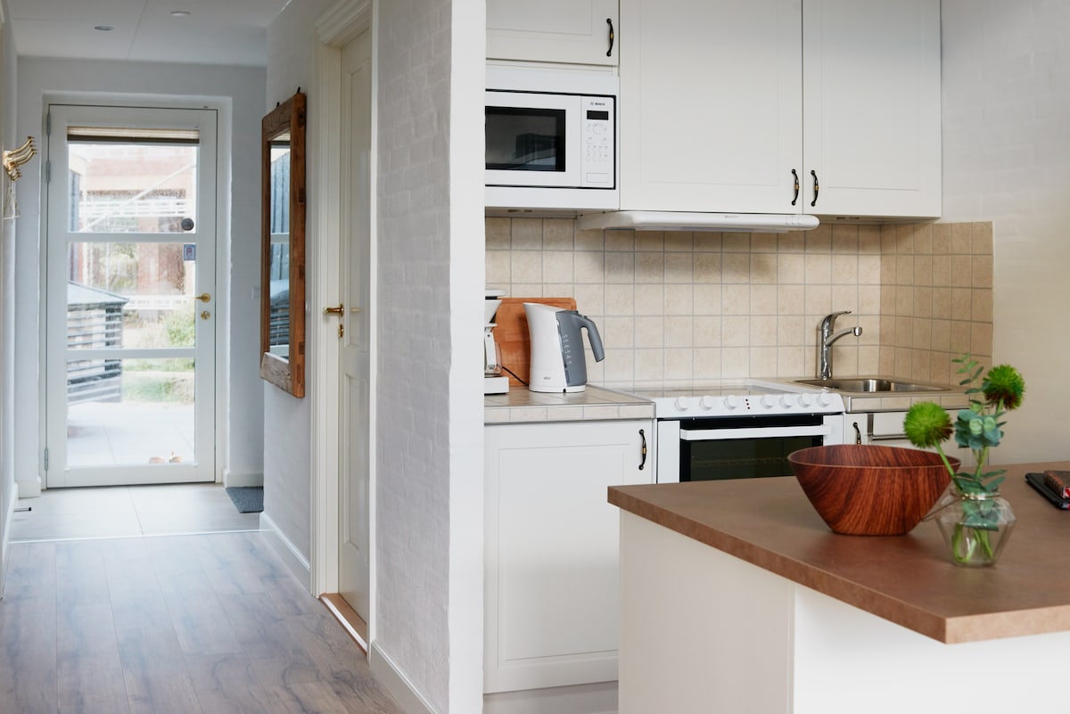 Jabulela iholide lakho kwenye yezindlu zethu ezincane ezingu-8 ezithandekayo. Uma usembhedeni olala abantu ababili ubuka i-fjord ne-Bjerregård Havn. Ungazenzela isidlo sakho sasekuseni ekhishini elincane elinamapuleti ashisayo angu-2 nezinto zokupheka, noma unga-oda isidlo sasekuseni ngathi (ngezindleko ezengeziwe) Jabulela ukuphuma kwelanga ngekhofi elishisayo elihwamukayo ukuze ubone izinkulungwane zezinyoni ezifudukayo endaweni engcwele yezinyoni zase-Tipperne. Uma ufuna ukuya e-North Sea, kuqhele ngemizuzu engu-15 uhamba ngezinyawo. Amalineni ombhede namathawula afakiwe enanini.