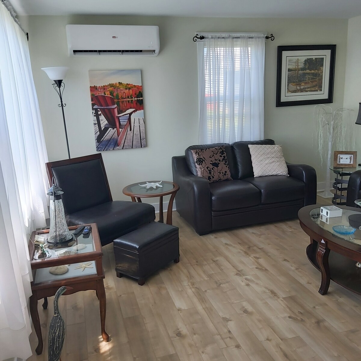 Phumula futhi uphumule kuleli gumbi lokulala elithulile, elihle elingu-3, ifulethi elikhulu elinegumbi lokugezela elilodwa lilala izivakashi ezingu-6. 1 king bed 2 queen. Itholakala ngokuqondile eMfuleni i-Mill enendawo enhle kakhulu yamanzi. Igceke elikhulu elingemuva eline-gazebo ehlanganyelwayo, umgodi womlilo ukuze ujabulele ubusuku obuhle basehlobo noma basebusika. Imizuzu engu-5 ukusuka e-Mill River Resort & golf course. Imizuzu engu-2 ngemoto eya esitolo sokudla, esiteshini segesi, ezindaweni zokudlela, enxanxatheleni yezitolo, emizileni yokuhamba ngezinyawo nasemapaki. Abanikazi basendaweni. Amasevisi ezilimi ezimbili ayatholakala. (FR,EN)