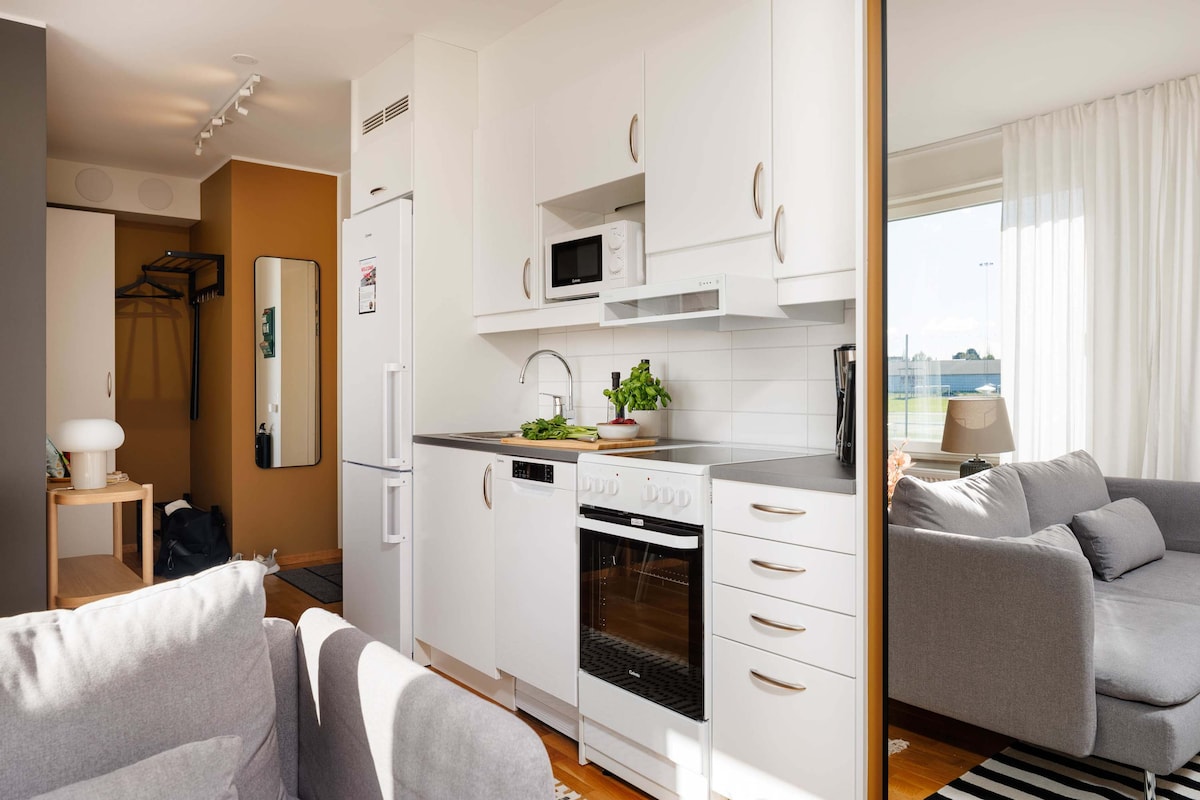 Indlu yezivakashi esanda kulungiswa engaba ngu-40m2, enamasevisi amaningi ekhaya. Ukusondelana namanzi nebhishi elincane eliyindlela ethandwayo yokuhamba ngezinyawo ebusika. Iphakathi nendawo futhi iseduze nebhasi noma isitimela. Indlu yezivakashi isendaweni efanayo ne Bungaza indawo yokuhlala yomndeni. Cishe imizuzu engu-5 uhamba ngezinyawo uye ejimini nase-pizzeria. Imizuzu engu-10 yokugibela ibhayisikili ukuya esitolo sokudla, cishe imizuzu engu-15-20 ngebhayisikili ukuya edolobheni. Indawo yokupaka iyatholakala. Uma unabantu abangaphezu kuka-2, kunezindawo zokulala ezengeziwe eziqashisayo ezinemali. Phawula ukuthi indawo iyabanda ebusika