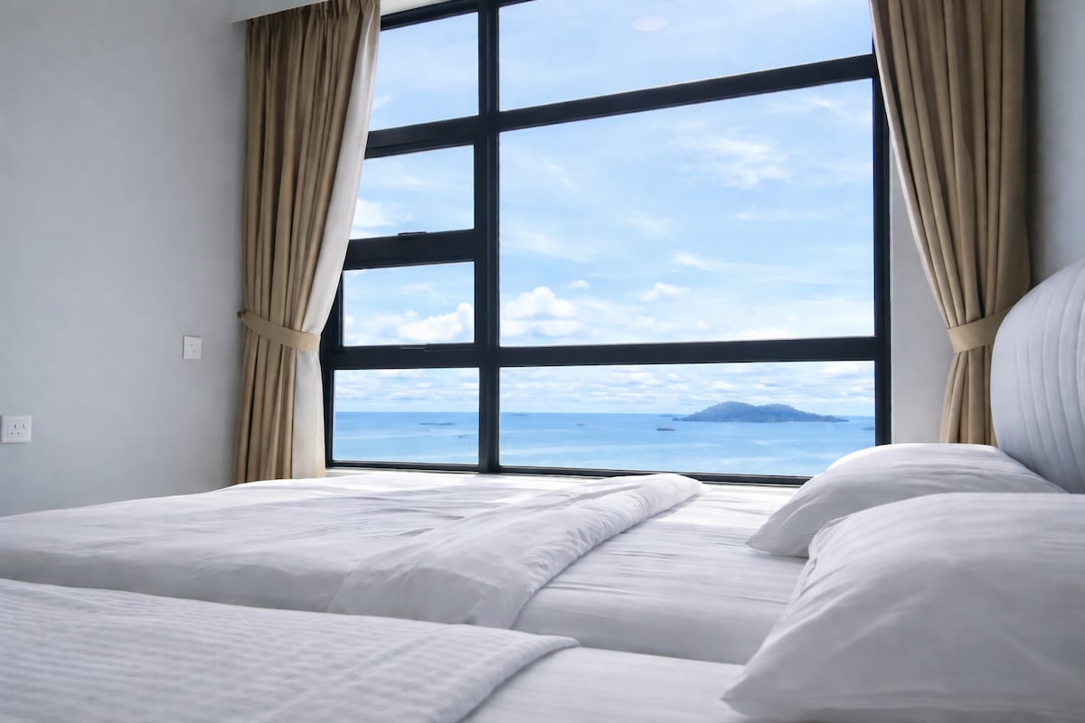 - Ukubuka ulwandle okubabazekayo +ukushona kwelanga kule ndawo emaphakathi nendawo. - Isitolo se-24Hrs esilula nesitolo sokuwasha izingubo esitezi se-Condo. - Imizuzu engu-3 ukuya e-Jetty(uhambo lwesikebhe oluya eziqhingini). - 4min walk to Jesselton Mall Duty Free shop. - 7min walk to Suria Sabah - 8min walk to Eatery izitolo eGaya Street, Gaya Street ngoLwesihlanu nangoMgqibelo PM Market & Sunday AM Market - 15min walk to Atkinson Tower - 14min ukuhamba ukuya Sabah International Convention Center(SICC) - 30-50min ukuhamba ukuya e-Tanjung Lipat Beach,i-Floating Mosque