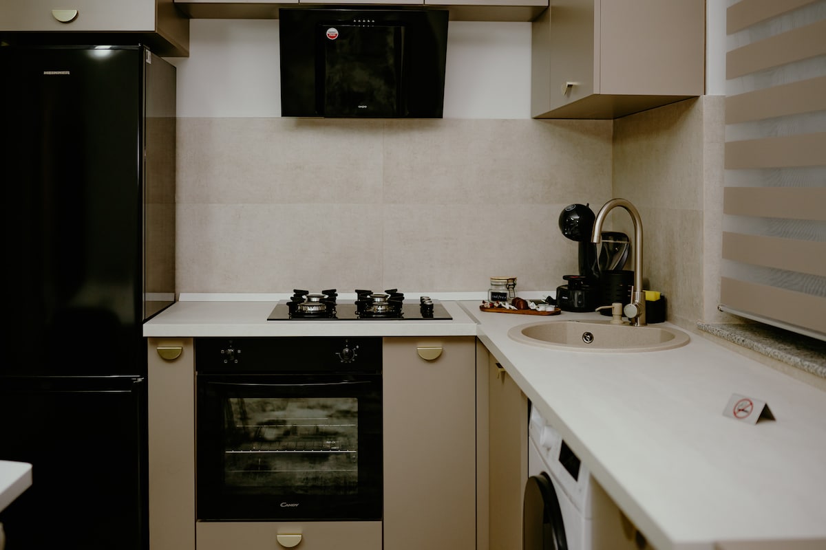 Ifulethi linezimo ezinhle kakhulu zokuhlala okuphumelelayo! Ikhofi lomshini we-espresso lisendlini. Sinikeza ama-slippers alahlwayo, izimvilophu zejeli yeshawa/i-hair conditioner Amahhotela,izitsha zifakiwe nokuningi!