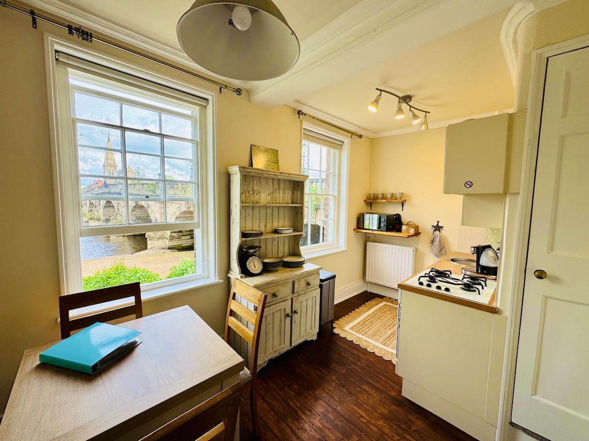 I-Petit Blythe iyazimele futhi iseduze nekhothiji elihehayo endaweni enhle eduze noMfula iSevern. Isitezi saphansi sinombhede oyisofa (kukhokhiswa imali eyengeziwe ngokusebenzisa umbhede oyisofa engu-£15 ubusuku ngabunye), i-TV nendawo yokuphumula enetafula lokudlela elincane kanye nekhishi elincane. Igumbi lokulala eliphezulu linombhede ophindwe kabili negumbi leshawa elihlangene nalo. Ungahamba emaphandleni usuka emnyango futhi kulula ukuya edolobheni ngezinyawo ngemizuzu engu-20/25, udlule i-Theatre Severn namabha nezitolo zokudlela eziningi.