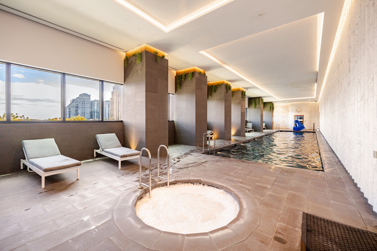 I-Sky One 35th floor high ceiling penthouse, i-stylish and luxury finishes, central of central location, imibono emangalisayo yedolobha/ulwandle/entabeni/ukushona kwelanga. Amagumbi okulala angu-3, izindlu zokugezela ezingu-3, indawo yokupaka yamahhala, i-wifi enejubane elikhulu kakhulu ne-smart TV netflix, i-aircon emaphakathi, indawo yokuzivocavoca yamahhala/indawo yokubhukuda/indawo yokuzipholela/ama-sauna/indawo yokuphumula+amanye amagumbi omsebenzi. Isikhungo sokuthenga esingaphansi: iziteshi zesitimela/amabhasi/amatekisi/amathilamu, izindawo zokudlela, amabhange nezinye izitolo konke kungamaminithi angu-5 uma uhamba ngezinyawo okungcono kakhulu ukuze kwenelise zonke izidingo zakho e-Melbourne yesibili i-CBD.