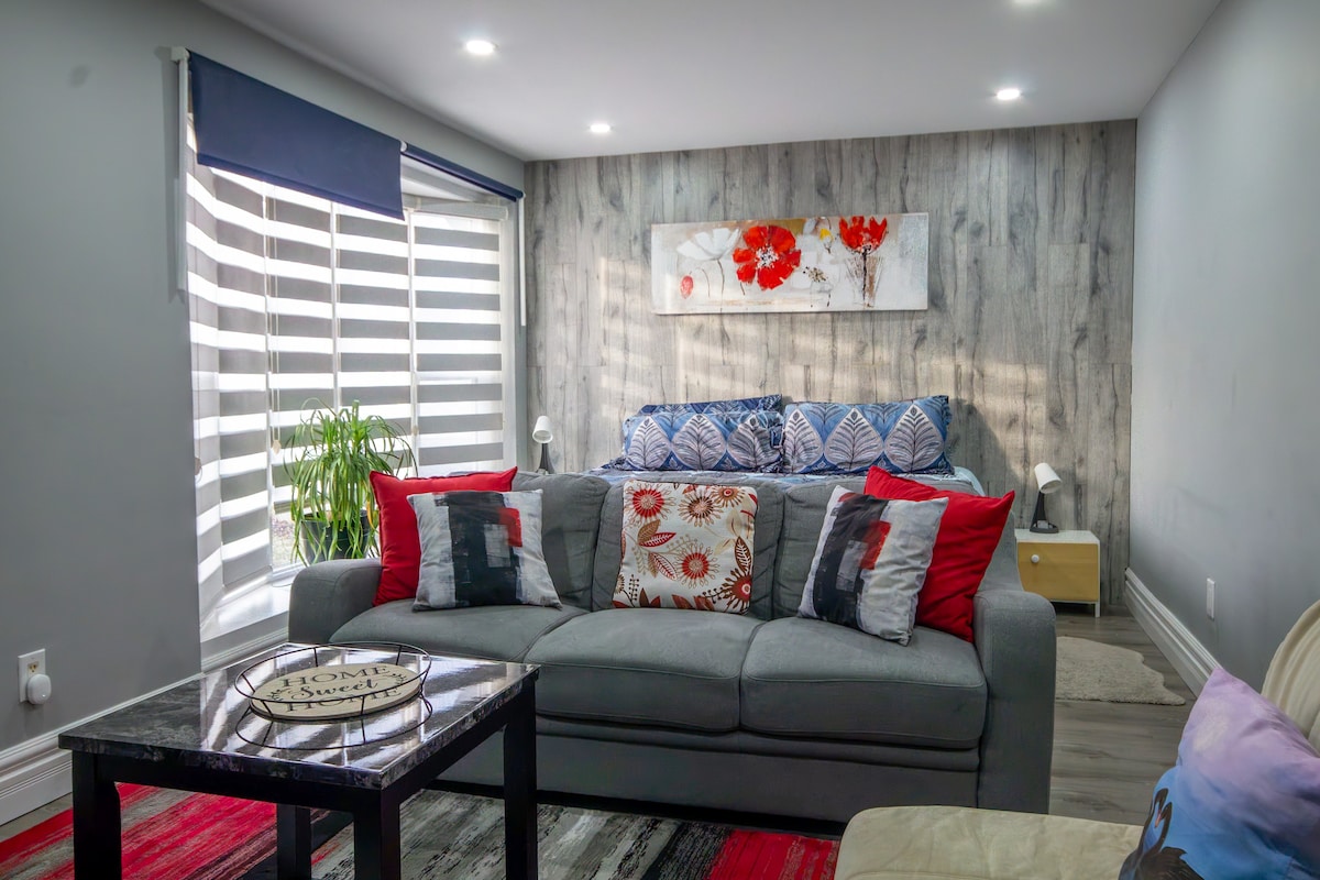 Phumula kule studio ethokomele enendawo yayo yokungena novulande ophrayivethi one-BBQ - indawo ethulile yokujabulela ikhofi lakho lasekuseni noma isidlo sakusihlwa. Itholakala eceleni kwe-Loafers Lake Park, futhi uhamba ngezinyawo imizuzu engu-3 ukuya endaweni yokuhamba, ezindaweni zokudlela, nasezitolo. Uqhele ngemizuzu engu-10 kuphela ukusuka e-Heart Lake Conservation Park (ukubhukuda, ukuhamba ngezinyawo ezihlahleni, amapikiniki, njll.) nemizuzu engu-15 ukusuka e-Bramalea City Centre. Le ndawo ehlukile ikugcina useduze nemvelo kodwa ixhumene nayo yonke.