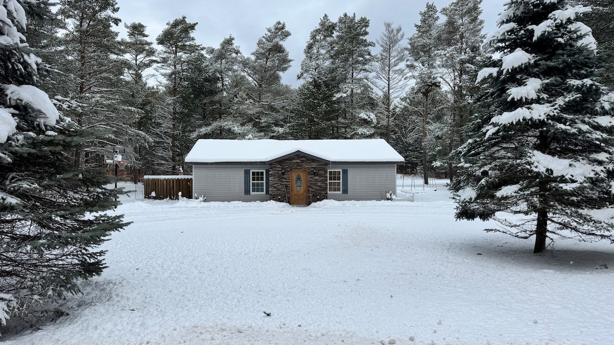 Lena yindlu entsha sha enefenisha ephelele engu-2 ehlathini! Kuhle, kuyimanje futhi kunokuthula okukhulu. Kunamakamelo angu-2 nesofa yokudonsa phezulu kanti omunye usofa wokudonsa ukuze ulale phansi okwengeziwe uzotholakalela maphakathi no-May! Kunamagumbi okugezela aphelele kuwo womabili amazinga endlu. Itholakala ngokuqondile emizileni yeqhwa kanye nemizila yamavili angu-4 futhi kunendawo yokupaka eningi etholakalayo! Kunompheme wesibili wezindaba/uvulande onendawo enhle, enokuthula ehlathini!