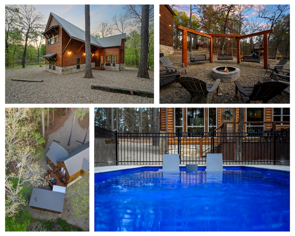 Indlu eyakhiwe ngamapulangwe entsha eqhele ngamamayela angu- ~12 ukusuka e-Broken Bow Lake nase-Cedar Creek Golf Course! Ngaphansi kwekhilomitha ukusuka emizileni ye-ATV. Le ndlu eyakhiwe ngamapulangwe itholakala kalula kodwa iseduze neHlathi Likazwelonke lase-Ouachita. Ngaphezulu kuka-2,300 sq ft futhi kulala abantu abangafika kwabayisishiyagalombili! Indawo eningi yokubuyela emuva futhi uphumule ngobumfihlo. Ama-HDTV angu-5 anamashaneli e-TV abukhoma, i-wifi esheshayo, usilingi ongamamitha angu-30, izindawo zokubasa umlilo zangaphakathi nezangaphandle, ubhavu wamanzi ashisayo, nengadi ye-firepit. Ubhavu wamanzi ashisayo kuvulandi wangasese obheke indawo ethulile enamahlathi.