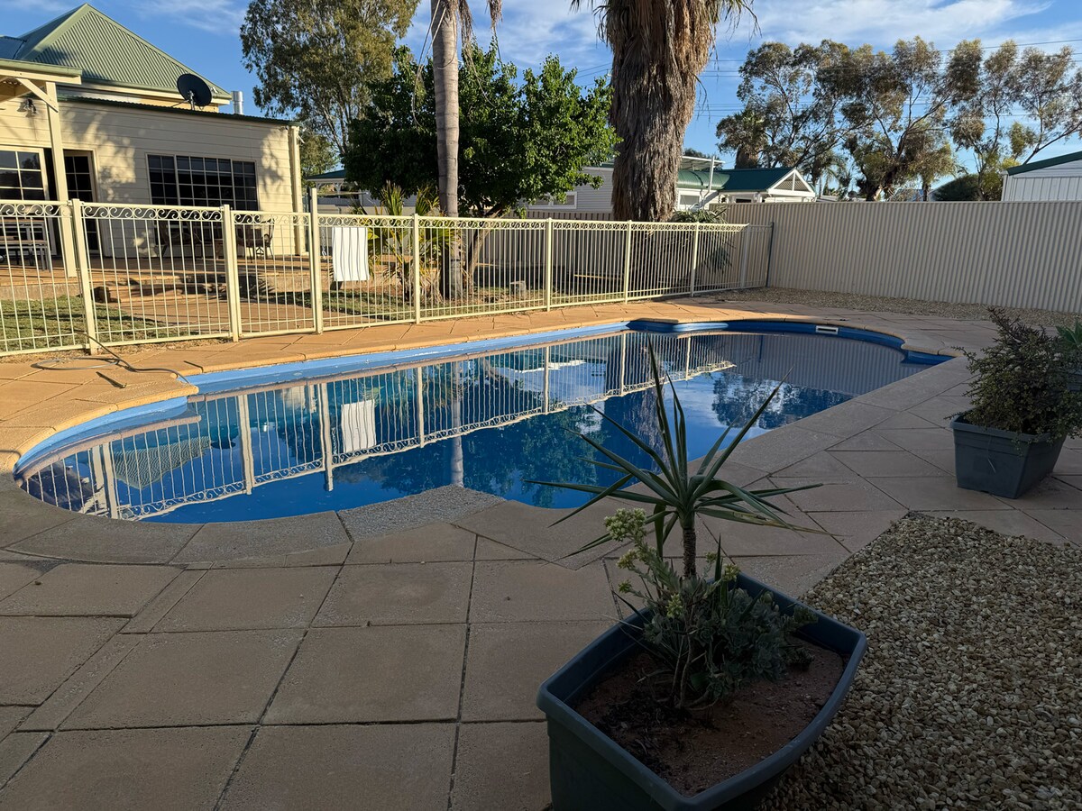 Phumula kule ndlwana ethulile ese-Broken Hill efakwe ohlwini lwamagugu, ekahle ngokuphelele emibhangqwaneni, emindenini, ezihambini, noma ezisebenzini. Paka ngokuphephile ngaphandle komgwaqo egalaji, elinendawo yezimoto eziningi, amakharaveni, noma izimoto ezinkulu egcekeni elingemuva. Ncamela ezihlalweni zikagesi ezinamaphothi okushaja, ujabulele i-Wi-Fi esheshayo, ama-TV okustrima, imibhede ethokomele, kanye neshawa yesimanjemanje eqabulayo. Phumula ngaphakathi noma uzulazule engadini ukuze ukhe izithelo zonyaka ezihlanganisa ama-apula, amaplamu, ama-mandarin, ama-passionfruit, nama-strawberry.