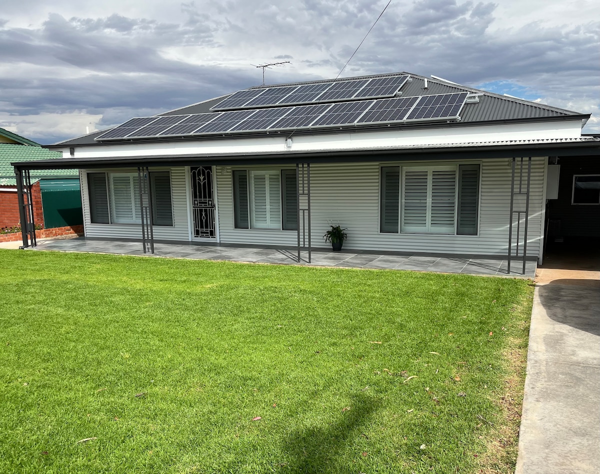 Siyakwamukela, le ndlu iyimizuzu engu-5 ukuya edolobheni ngezinyawo. Inamakamelo okulala angu-4: angu-3 anemibhede emikhulu no-1 onombhede olala abantu ababili, wonke anama-Smart TV. Kukhona negumbi lokuphumula eline-TV, igumbi lokudlela, ikhishi, igumbi lokugezela, ilondolo, indawo yokupaka negalaji. Kukhona i-wifi enokwethenjelwa ye-Telstra, amasistimu ahlukanisiwe angu-6 nendawo yokudlela yangaphandle. Ekuhlaleni okungaphezu kwezinsuku ezingu-7 ukuhlanza kweviki kuzonikezwa futhi kushintshwe ilineni kodwa indlu kuzodingeka ibhukhwe maviki onke. Thumela umyalezo ukuze uthole isaphulelo.