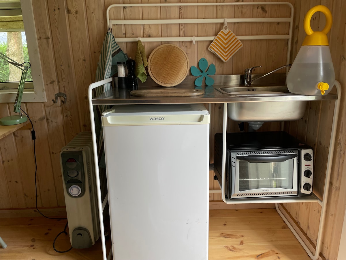 Isithasiselo esihle engadini eyimfihlo enendawo yababili nenja yakho. Ilungele izitobhi zomgodi ohambweni lokuhamba ngezinyawo e-Hærvejen, e-Fosdalen noma emzileni webhayisikili, njengegumbi elengeziwe lendlu yasehlobo noma indawo yokuhlala yokuvakasha komndeni noma iphathi. Nakhu konke okudingayo. Qalisa amabhuzu akho okuhamba ngezinyawo, songa izinduku, ujabulele ubusuku obufudumele basehlobo engadini ngaphansi kwezihlahla zama-apula. Vuthulula isoseji emgodini womlilo futhi uphumule ngaphambi kokuba uhambo luqhubeke engxenyeni enhle kakhulu ye-Denmark. Uzoba nengxenye yakho ebiyelwe yengadi