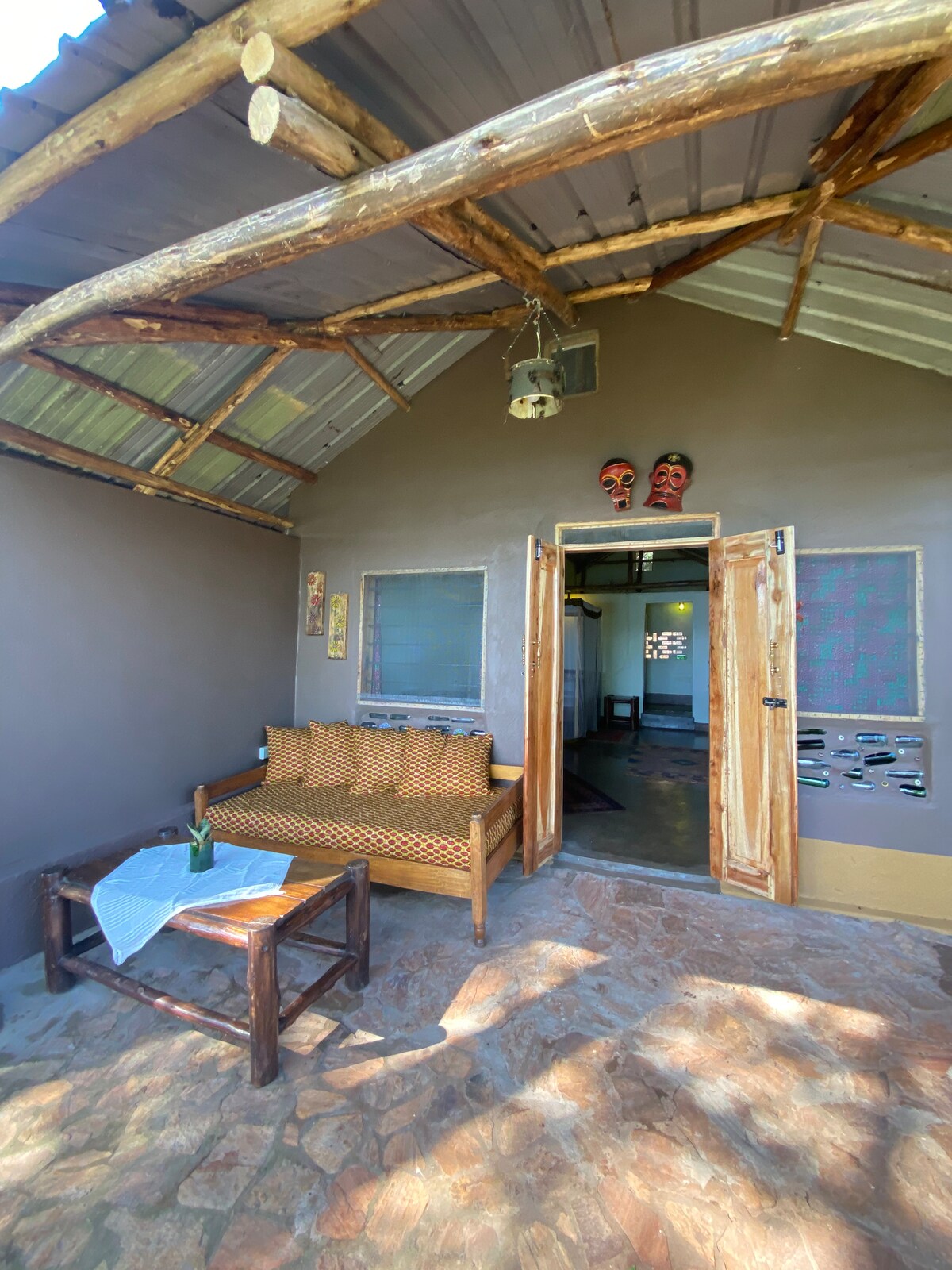 Indlu eyakhiwe ngamapulangwe e-Bujagali jinja