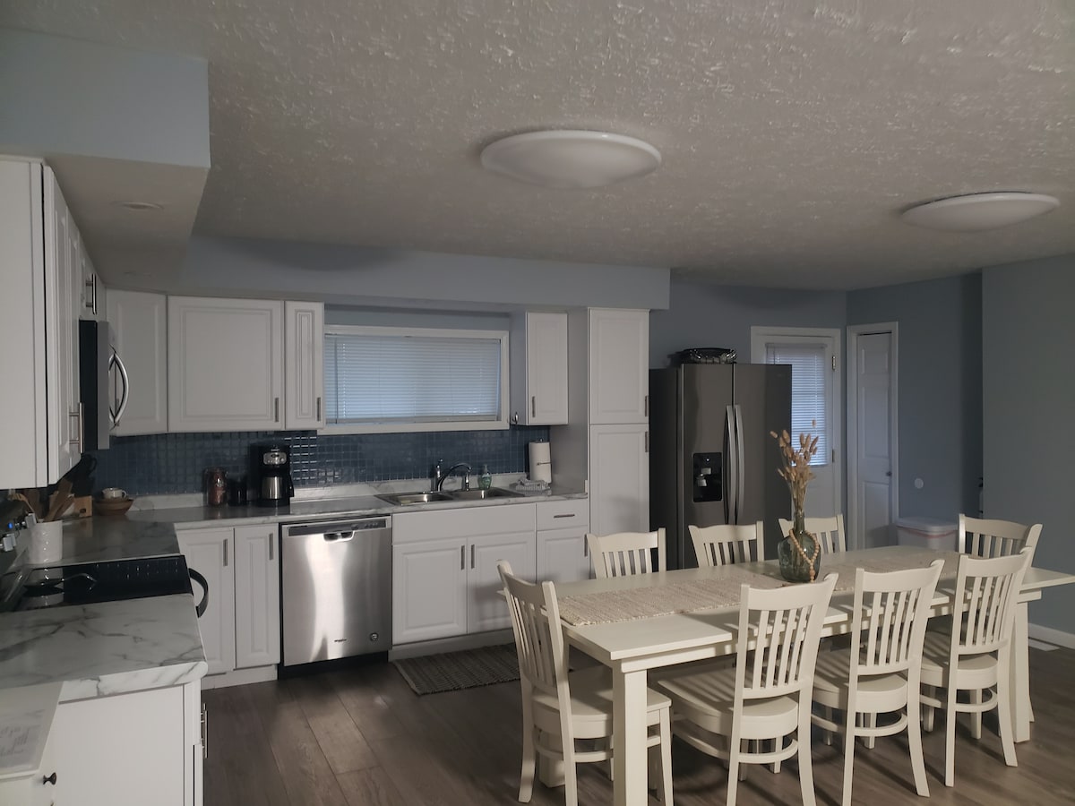 Sawubona, siyabonga! Siyajabula ngokuba nethuba lokukubungaza ngohambo lwakho lokuphumula noma uhambo olugcwele. Indawo yethu yasendaweni inamathuba amaningi okuqwala izintaba okuhlola, i-Southern Illinois Wine Trail iyasizungeza, futhi imigwaqo engemuva inemibono yezwe ekhangayo. Indlu yethu eyakhiwe ngamapulangwe izobe ilinde ukufika kwakho noma ukubuya, ifakwe kahle i-TV engu-55"ngenhla kwendawo yomlilo yegesi, umbhede okhululekile wosayizi we-King, kanye nompheme ongemuva omangalisayo one-Weber Grill nobhavu omkhulu oshisayo.