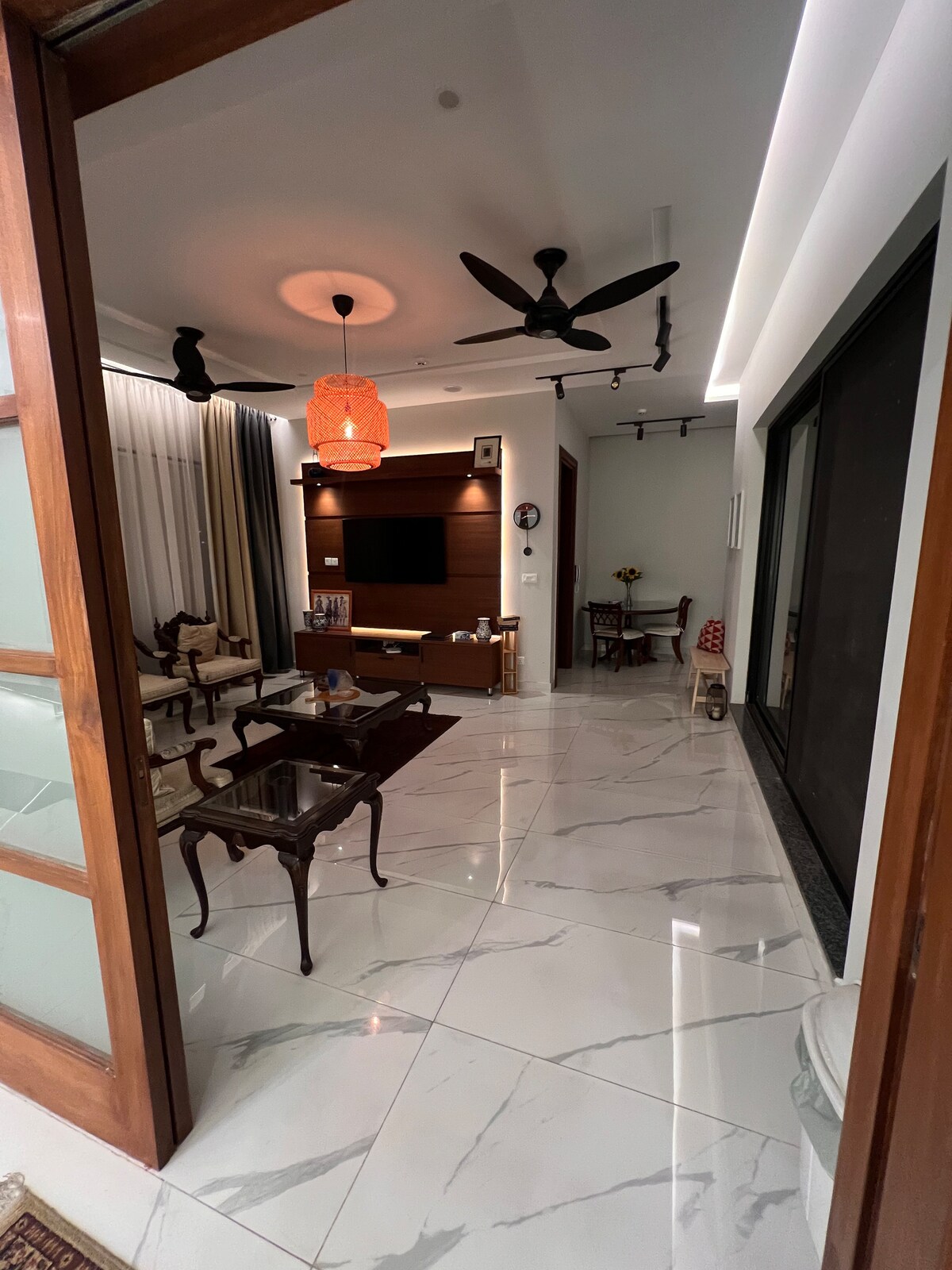 Jabulela ukuhlala kwakho kuleli khaya elihle elinamagumbi angu-3 e-DHA Phase 9 Town, e-Lahore. Eduze ne-DHA Phase 5, 6, i-Dolmen Mall, ne-Raya Market. Hlala upholile nge-AC kuwo wonke amagumbi, phumula egumbini lokuphumula elikhulu eline-Google TV engu-55", futhi upheke ekhishini elinakho konke. I-Wi-Fi esheshayo nokunethezeka kwesimanje kuyenza iphelele emindenini, emaqenjini, noma kubahambi bebhizinisi. Ukufinyelela kalula ezitolo ezinkulu, izindawo zokudlela, nezindawo ezithandwayo eziseduze.